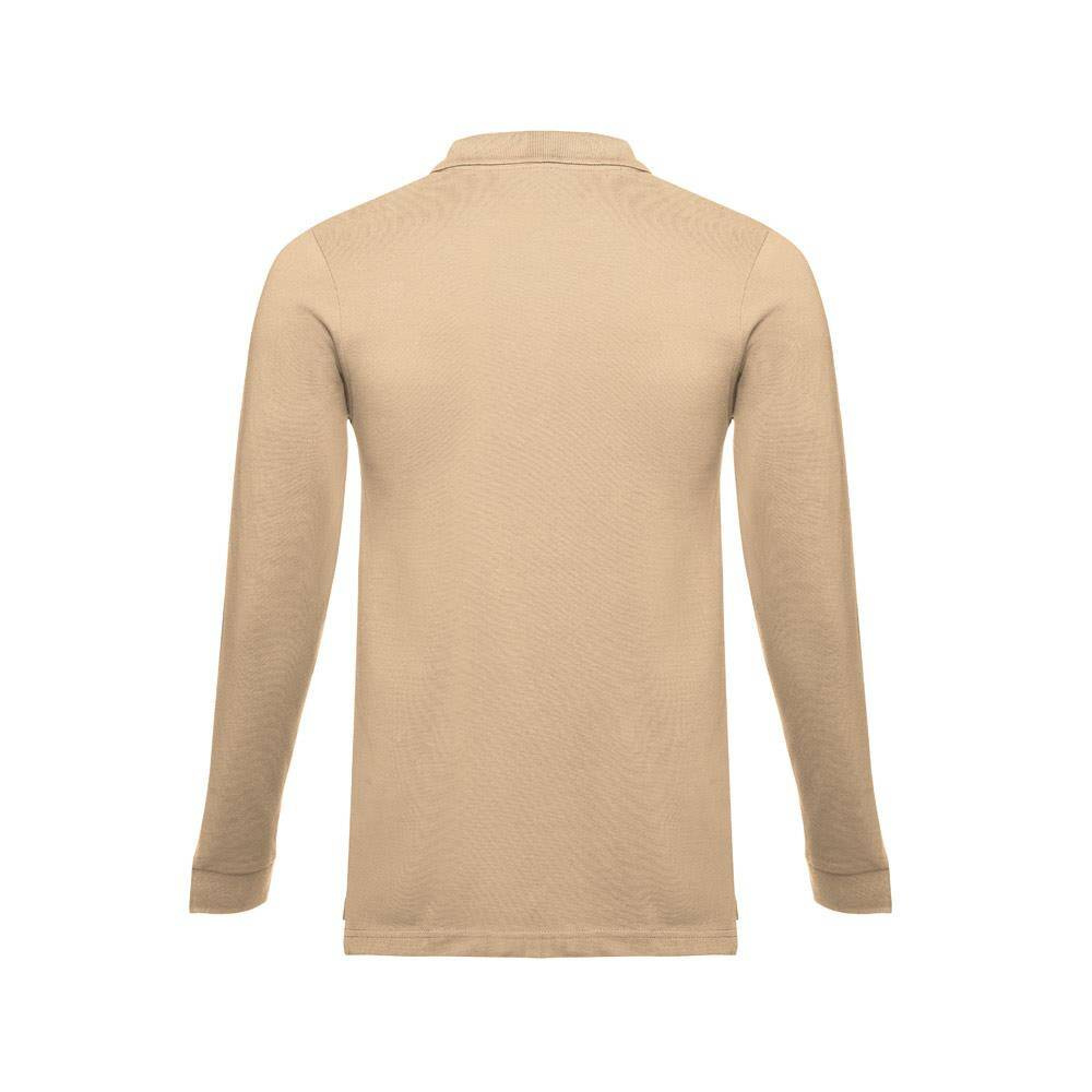 Męski t-shirt polo z długim rękawem ze 100% bawełny o splocie piqué (210 g/m²) ze zgrzebną przędzą bawełnianą (kolor 183: 85% bawełna/15% wiskoza). Polo o regularnym fasonie, z prążkowanym kołnierzykiem i rękawami. Kołnierzyk jest wzmocniony taśmą piqué. Posiada 3 dopasowane kolorystycznie guziki (dodatkowy guzik umieszczony w szwie wewnętrznym). Zszywany po bokach, z małymi rozcięciami w szwach bocznych. Rozmiar: 3XL