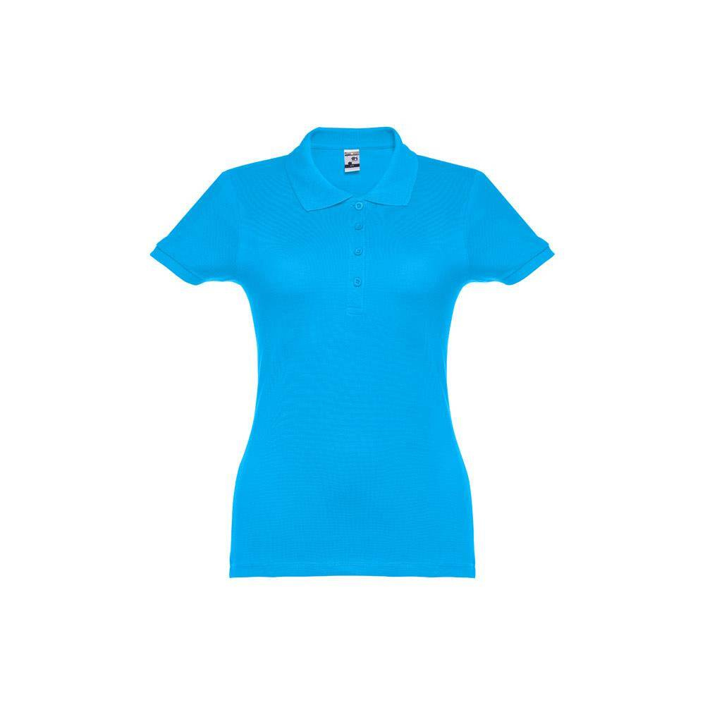 Damska koszulka polo z krótkim rękawem. 100% zgrzebna bawełna typu piqué (195 g/m²) (kolor 183: 85% bawełna/15% wiskoza). Kołnierzyk i mankiety ze ściągaczem, kołnierz wzmocniony tasiemką typu piqué. Z przodu obok kołnierzyka cztery dopasowane kolorystycznie guziki (dodatkowy guzik wszyty w szew wewnętrzny). Zszywana po bokach. Rozmiary: S, M, L, XL, XXL