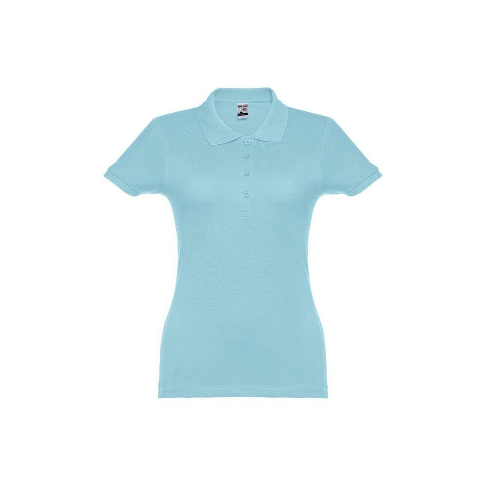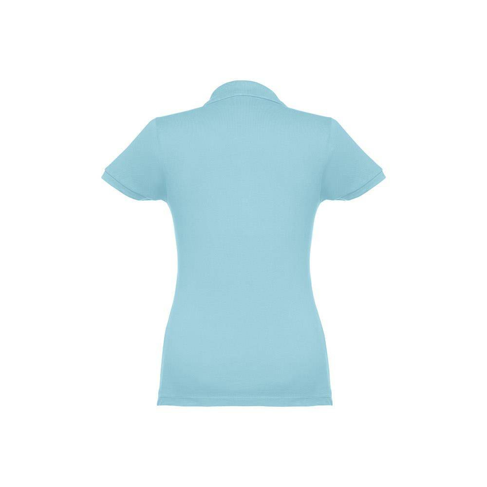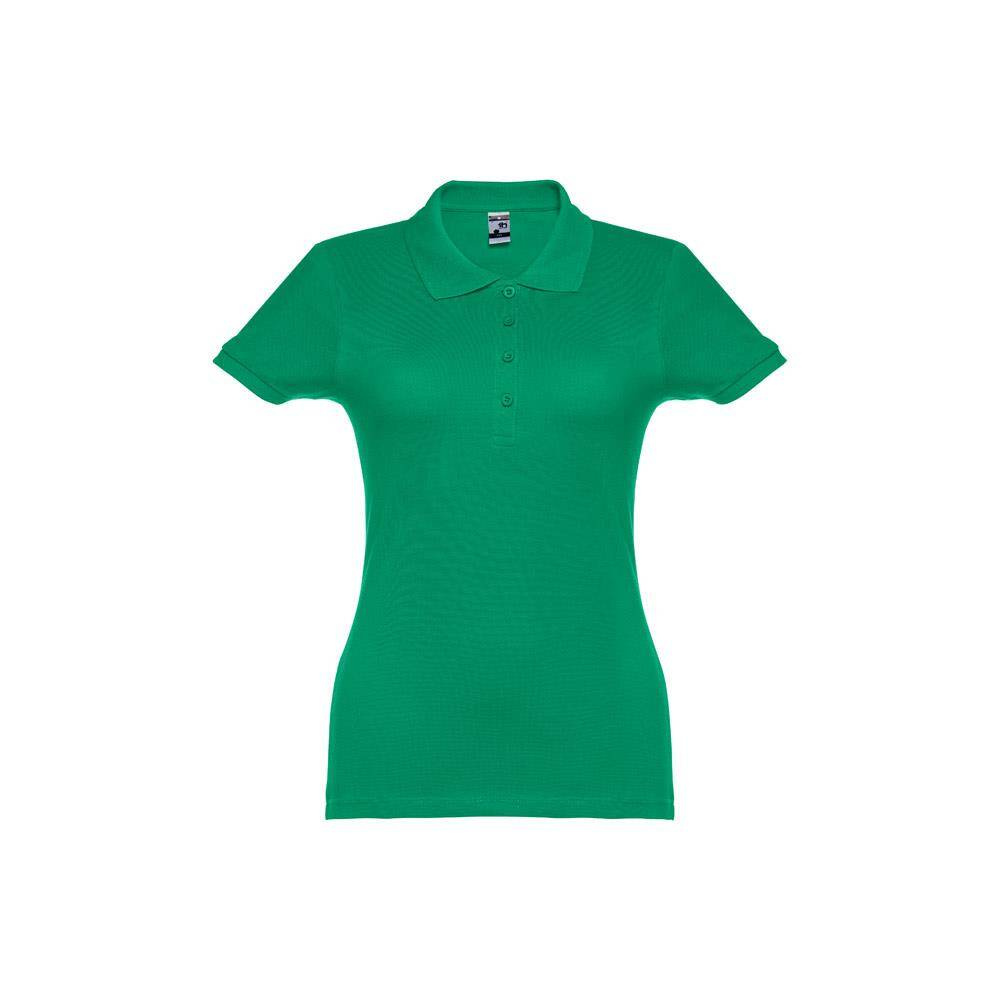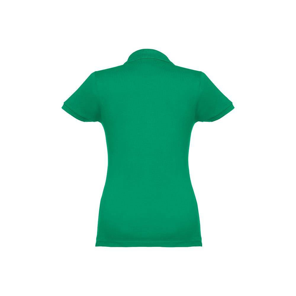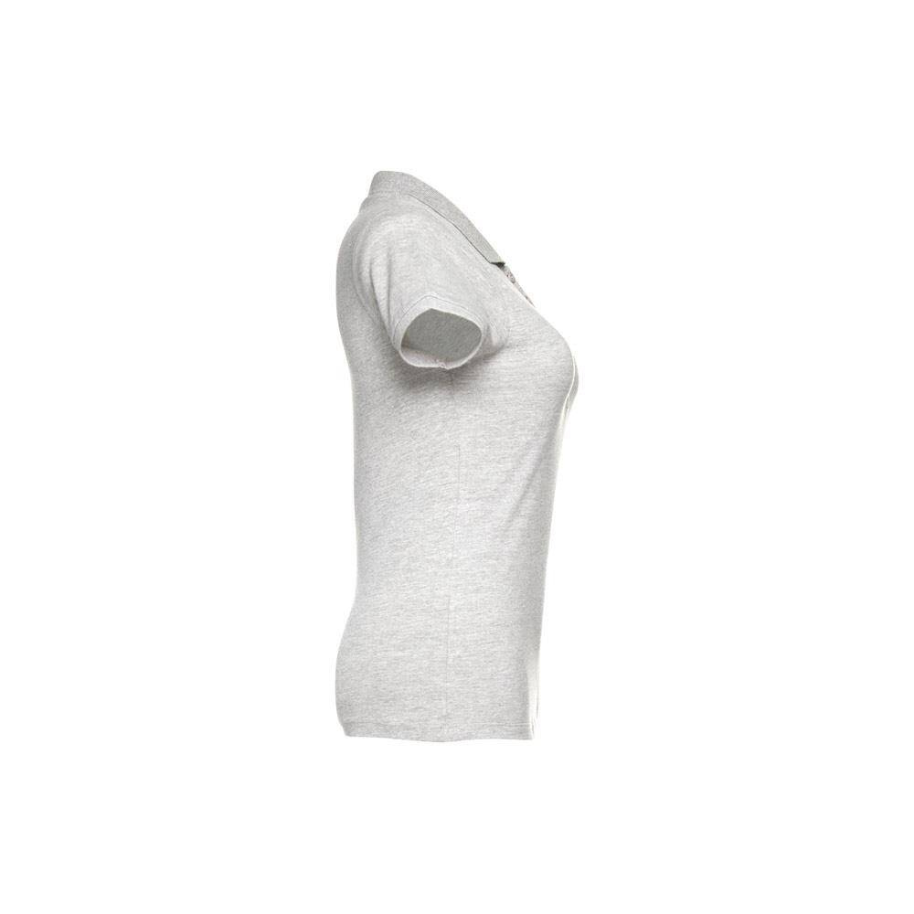 Damska koszulka polo z krótkim rękawem. 100% zgrzebna bawełna typu piqué (195 g/m²) (kolor 183: 85% bawełna/15% wiskoza). Kołnierzyk i mankiety ze ściągaczem, kołnierz wzmocniony tasiemką typu piqué. Z przodu obok kołnierzyka cztery dopasowane kolorystycznie guziki (dodatkowy guzik wszyty w szew wewnętrzny). Zszywana po bokach. Rozmiary: S, M, L, XL, XXL
