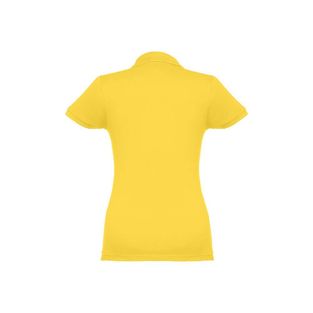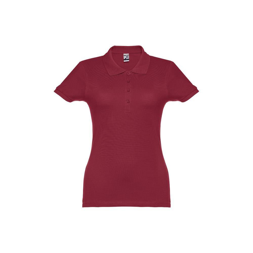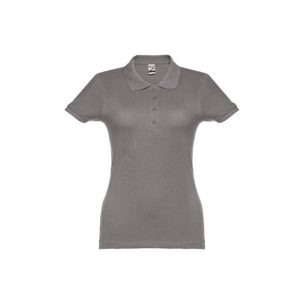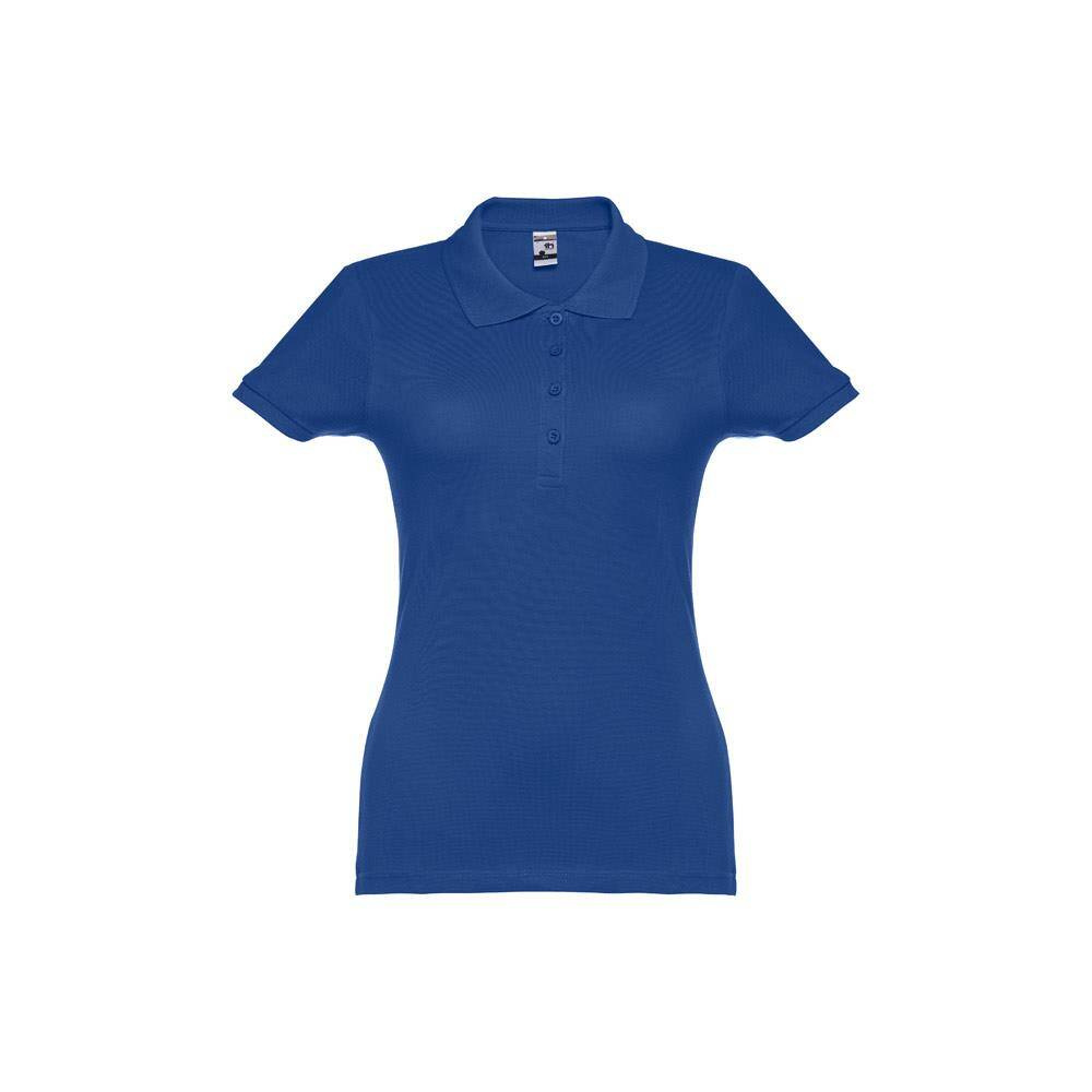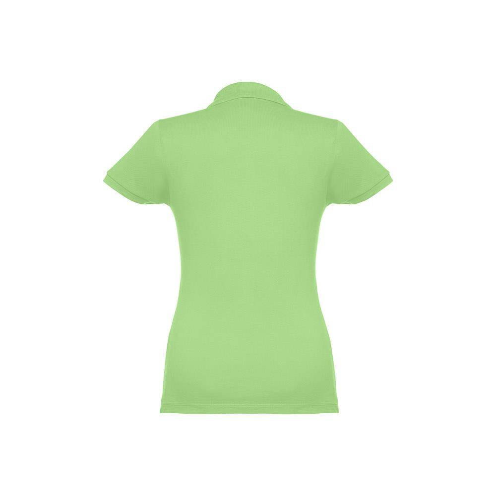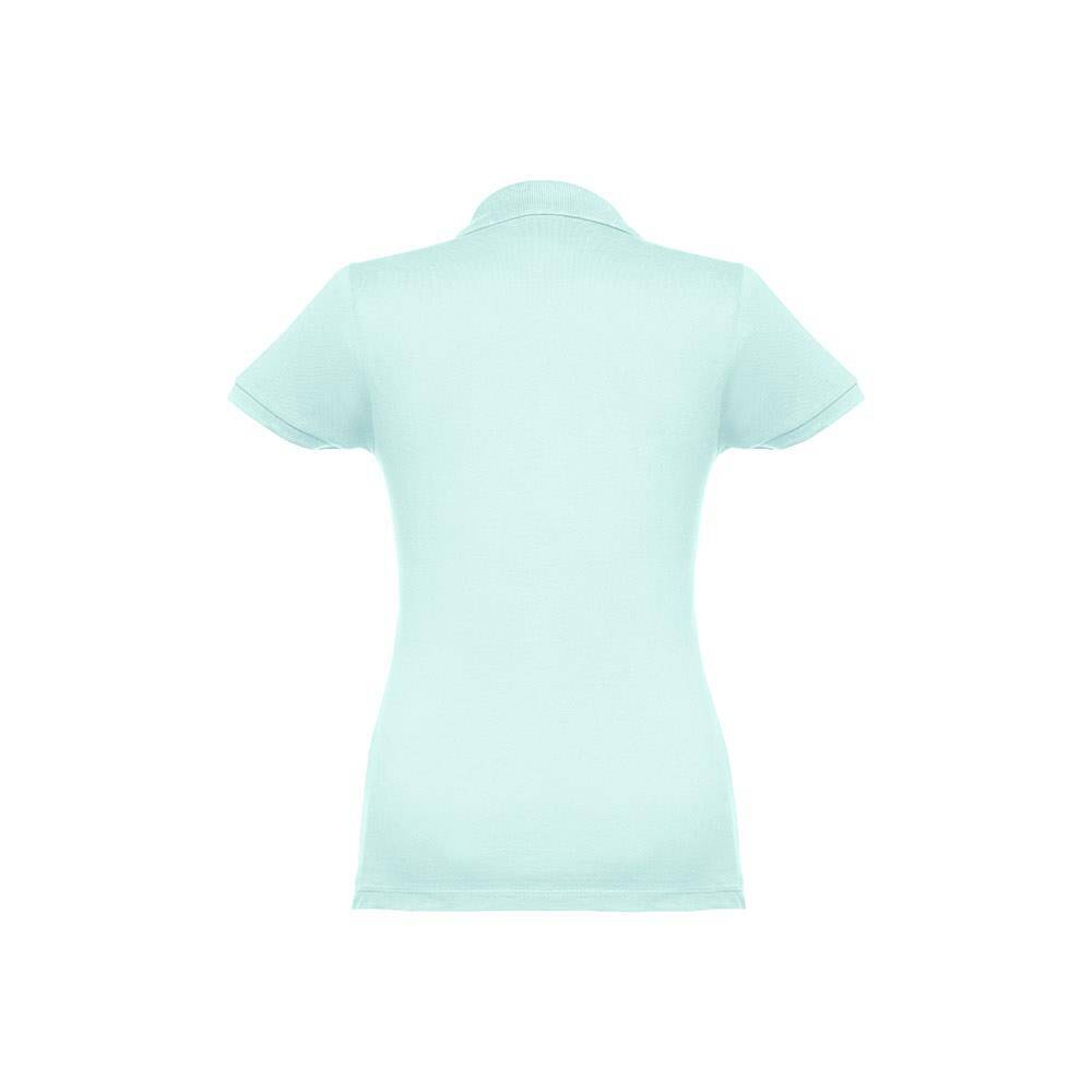 Damska koszulka polo z krótkim rękawem. 100% zgrzebna bawełna typu piqué (195 g/m²) (kolor 183: 85% bawełna/15% wiskoza). Kołnierzyk i mankiety ze ściągaczem, kołnierz wzmocniony tasiemką typu piqué. Z przodu obok kołnierzyka cztery dopasowane kolorystycznie guziki (dodatkowy guzik wszyty w szew wewnętrzny). Zszywana po bokach. Rozmiary: S, M, L, XL, XXL