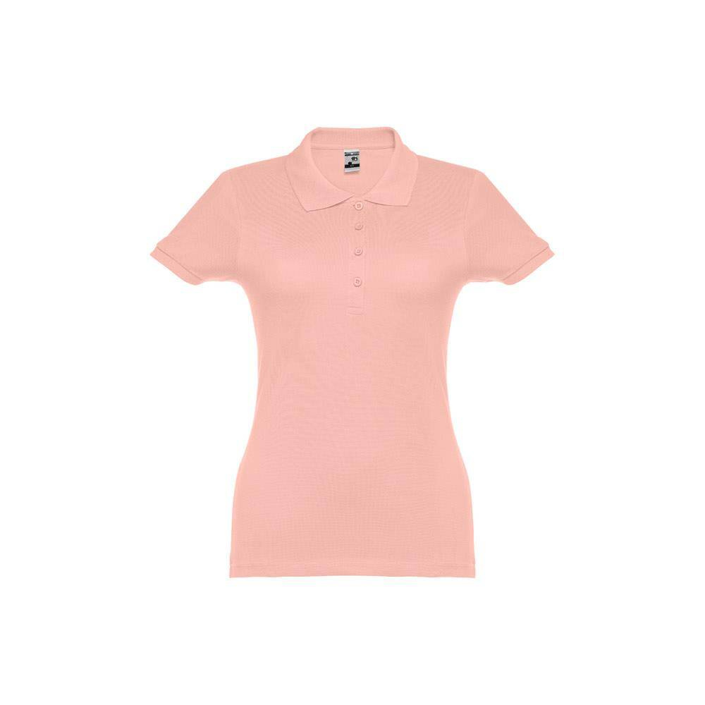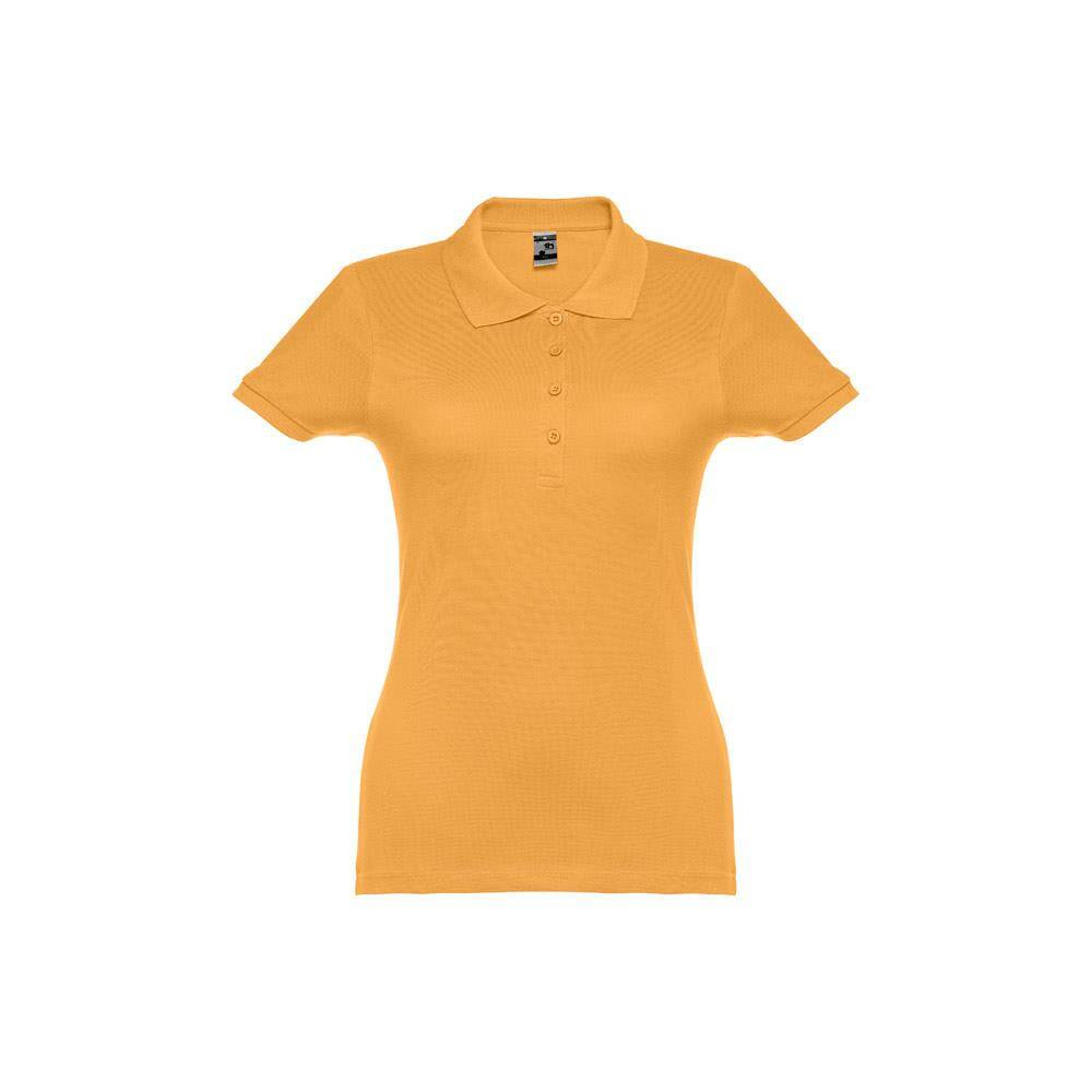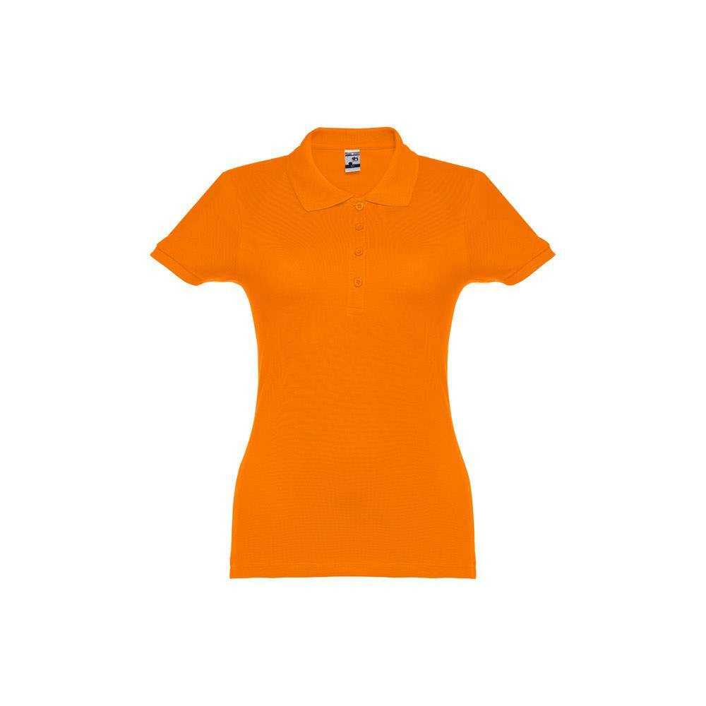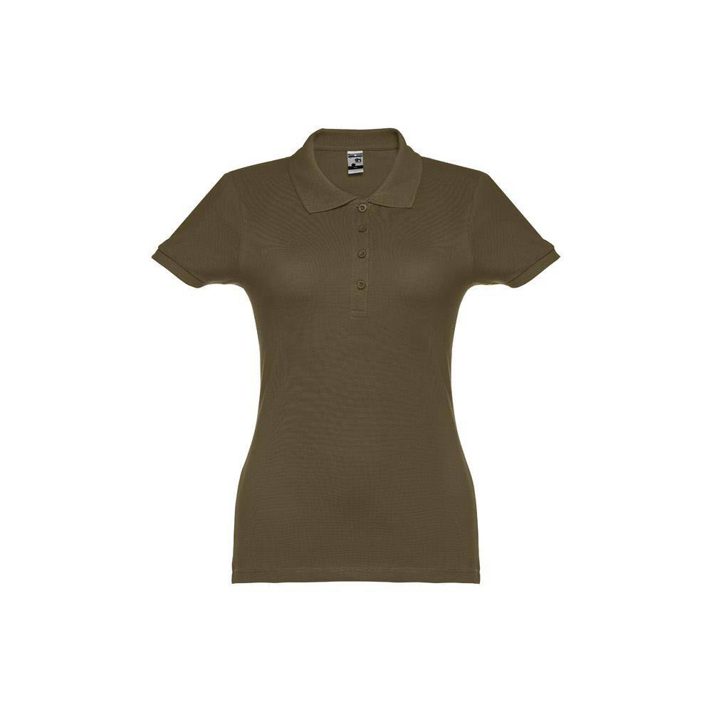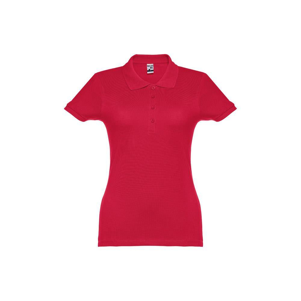 Damska koszulka polo z krótkim rękawem. 100% zgrzebna bawełna typu piqué (195 g/m²) (kolor 183: 85% bawełna/15% wiskoza). Kołnierzyk i mankiety ze ściągaczem, kołnierz wzmocniony tasiemką typu piqué. Z przodu obok kołnierzyka cztery dopasowane kolorystycznie guziki (dodatkowy guzik wszyty w szew wewnętrzny). Zszywana po bokach. Rozmiary: S, M, L, XL, XXL
