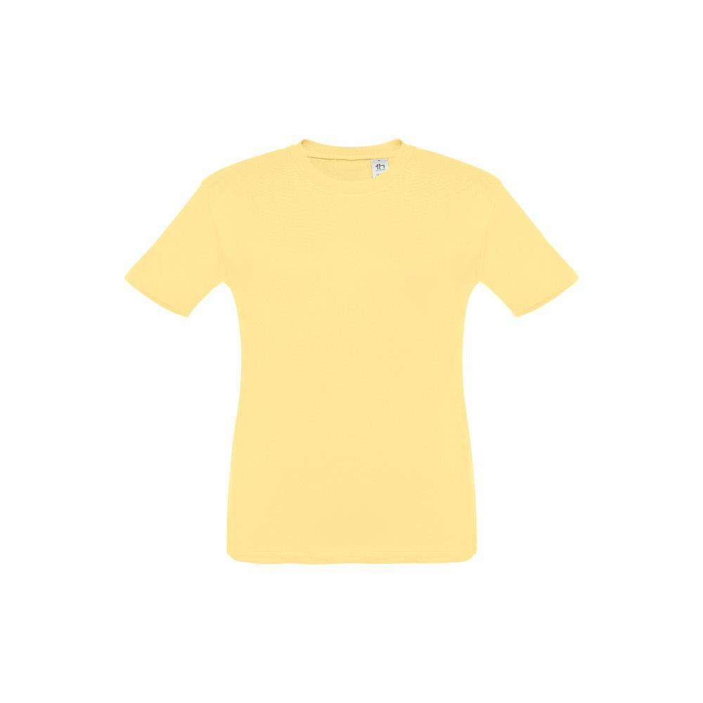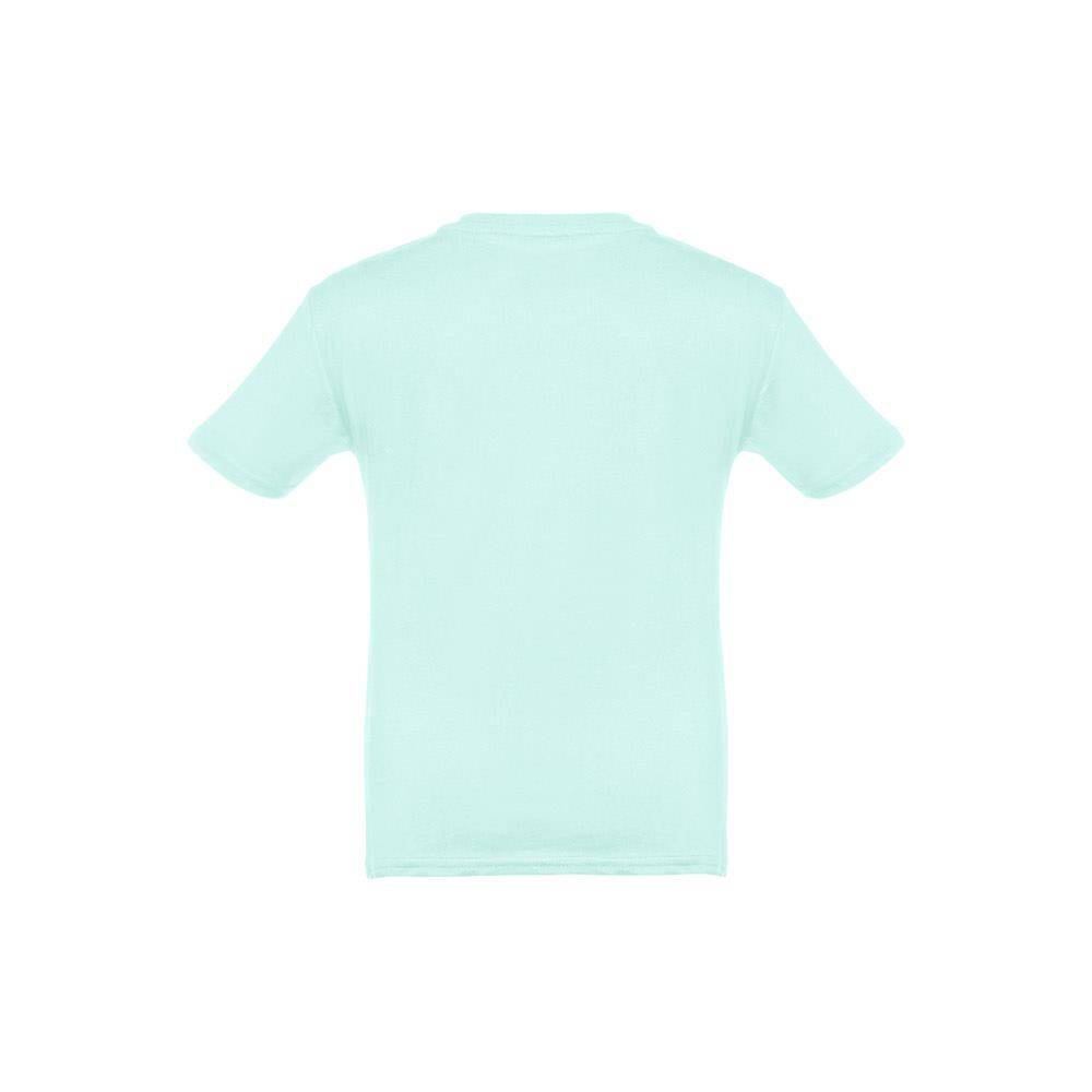 T-shirt dziecięcy (unisex) ze 100% bawełnianego dżerseju zgrzebnego (150 g/m²). Posiada 1x1 prążkowany kołnierzyk ze wzmacniającą tasiemką dżersejową. Zszywany po bokach, z podwójnym ściegiem na rękawach i na dole. Rozmiary: 2, 4, 6, 8, 10, 12