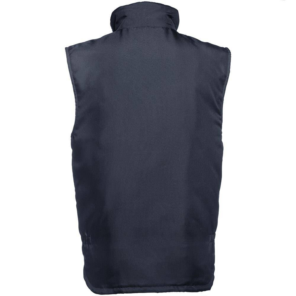 Wyściełana męska kamizelka robocza ze 100% poliestru oxford z powłoką akrylową (170 g/m²), podszewka w 100% z poliestru z tafty (65 g/m²). Kołnierz podszyty polarem i elastyczne boki dla lepszego dopasowania. Zawiera 6 kieszeni: 5 przednich, w tym 2 z wewnętrznym zamkiem, 1 na telefon komórkowy i 1 wewnętrzną. Zapięcie na zamek z tyłu dla łatwej personalizacji. Rozmiary: S, M, L, XL, XXL, 3XL