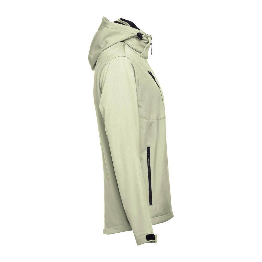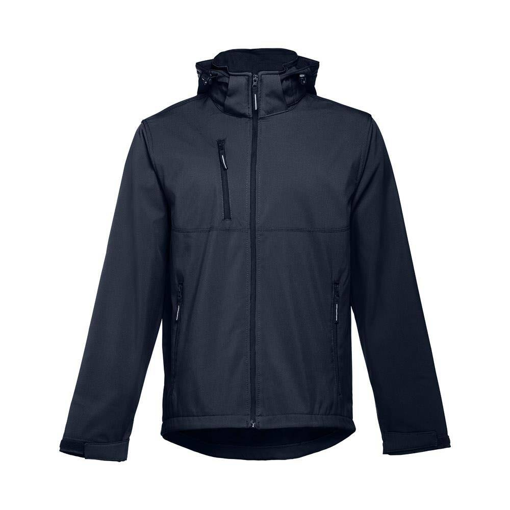 Męska kurtka softshell z 96% poliestru i 4% elastanu (280 g/m²), z dwiema warstwami, odpinanym kapturem i wodoodporną powłoką. Kurtka z polarową podszewką z 2 przednimi kieszeniami i ukośną kieszenią na piersi, wszystkie z zamkami. Regulowane mankiety o przylegającym zapięciu. Odpinany kaptur ze sznurkiem i paskiem o przylegającym zapięciu do mocowania przy kołnierzu. Kurtka ma zaokrgąglony dolny brzeg. Rozmiary: S, M, L, XL, XXL