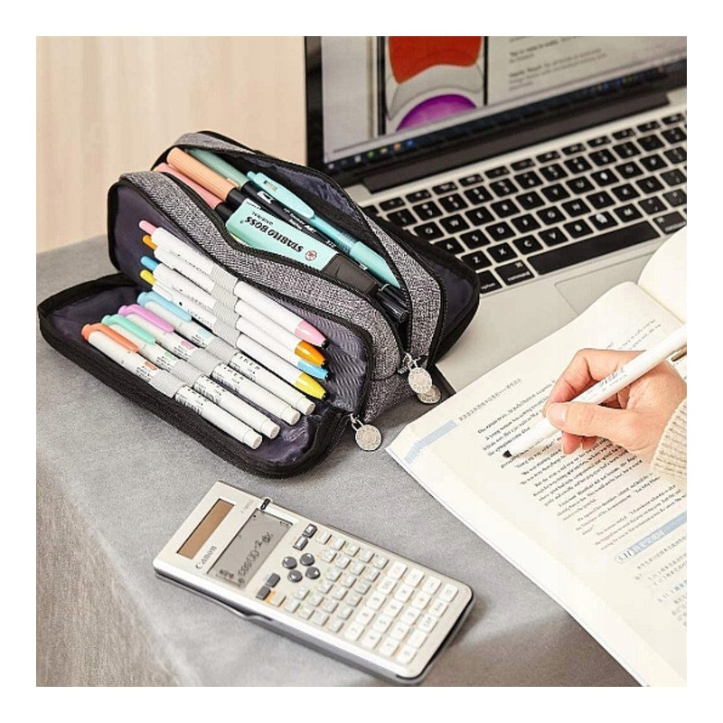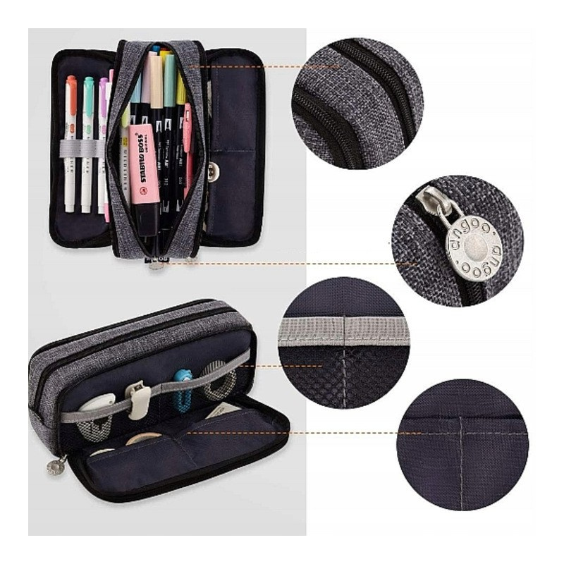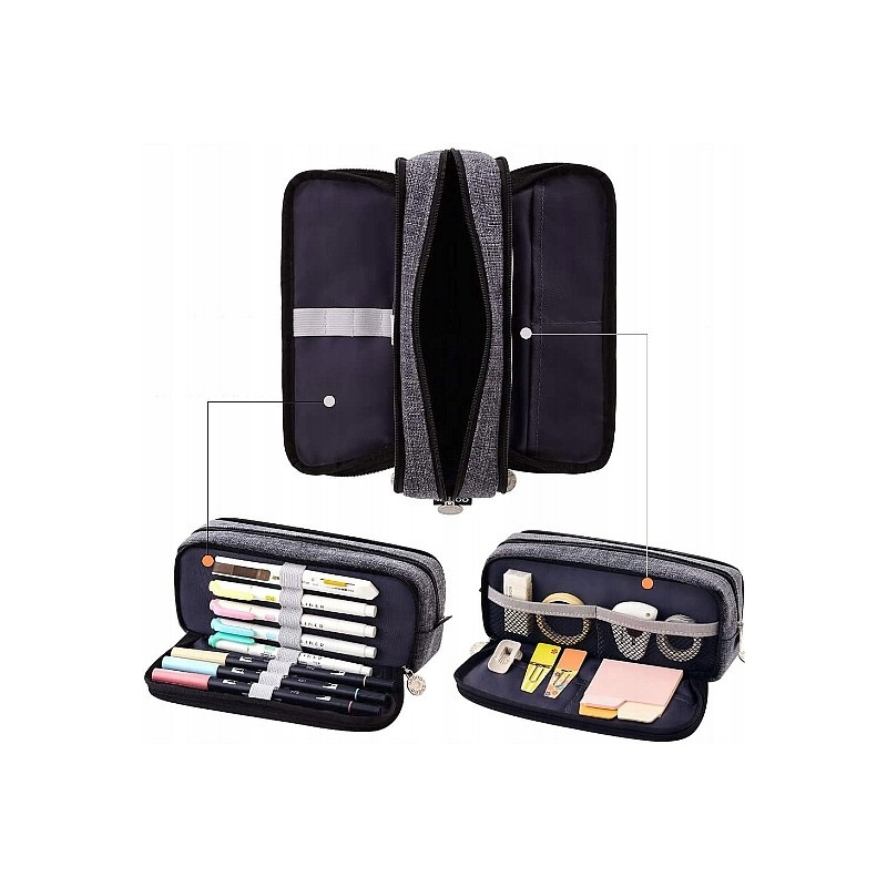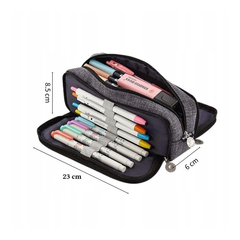 DUŻY PIÓRNIK WIELOFUNKCYJNY SASZETKA TRZYKOMOROWYWykonany z wysokiej jakości materiałów.Ergonomiczne wykorzystanie przestrzeni.Specyfikacje:Kolor: grafit, czarnyMateriał: 100% poliesterWymiary: 21,5 x 8,5 x 6 cmWaga: 110g