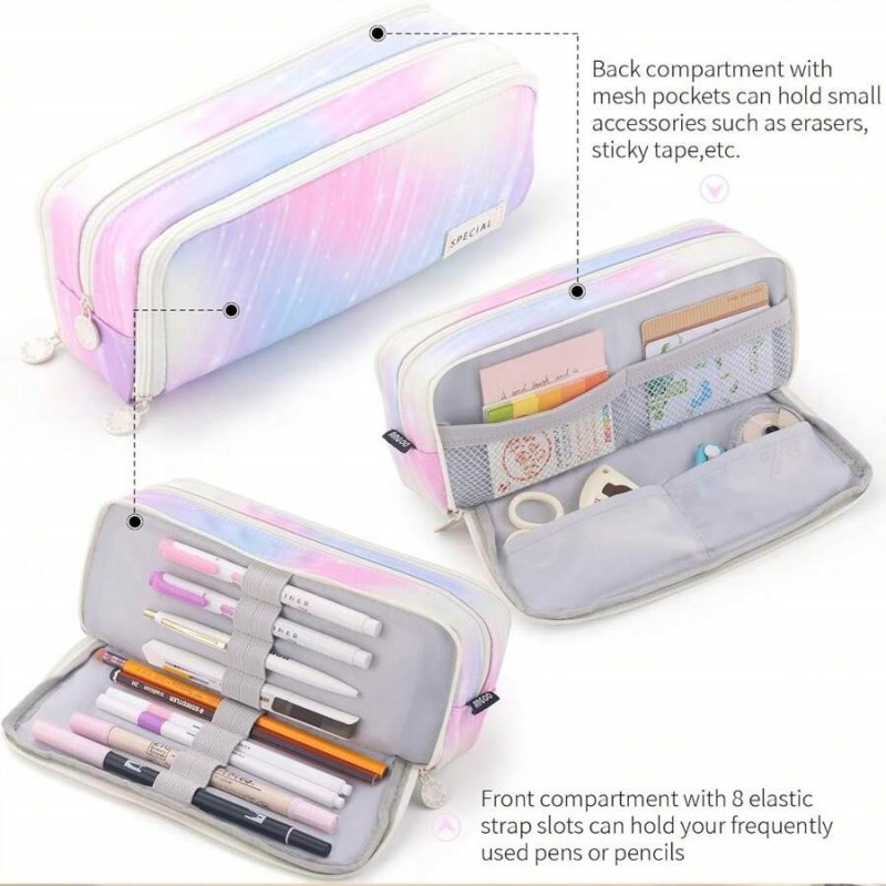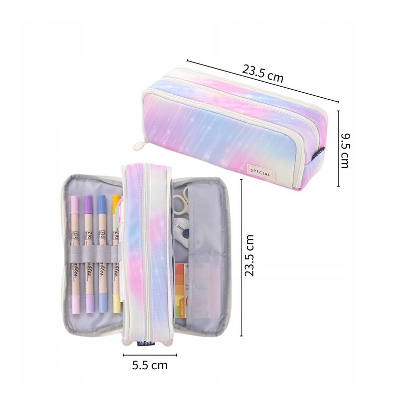 DUŻY PIÓRNIK WIELOFUNKCYJNY SASZETKA TRZYKOMOROWY Wykonany z wysokiej jakości materiałów. Ergonomiczne wykorzystanie przestrzeni. Specyfikacje: Kolor: wielobarwny Materiał: 100% poliester Wymiary: 23,5 x 5,5 x 9,5 cm Waga: 103 g