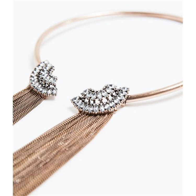 Klasyczne, piękne wzornictwo naszyjnika idealnie podkreśli naturalne piękno i klasę kobiety.Naszyjnik w kolorze złotym. z długimi wiszącymi łańcuszkami, zdobiony cyrkoniami.Świetnie pasuje do eleganckich, jak również do  codziennych stylizacji.Elegancki dodatek na każdą okazję, do sukienek, swetrów i bluzek.W naszym naszyjniku każda kobieta poczuje się wyjątkowo i pięknie:)