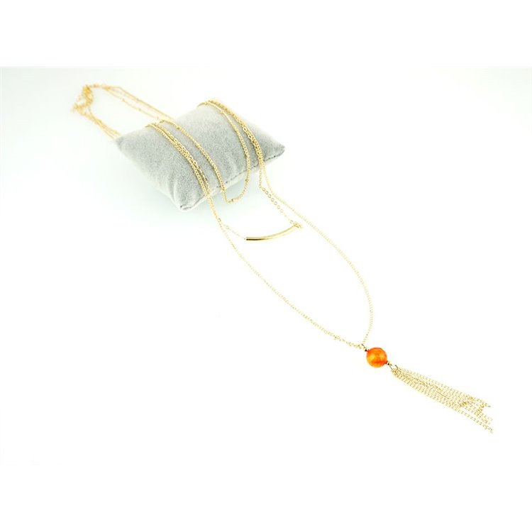 NASZYJNIK DŁUGI POTRÓJNY Z KORALIKIEM POMARAŃCZOWY