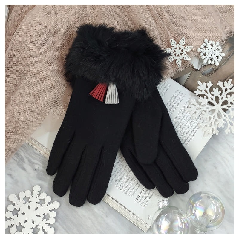 RĘKAWICZKI GLAM FUTRO REK111CZ czarne
