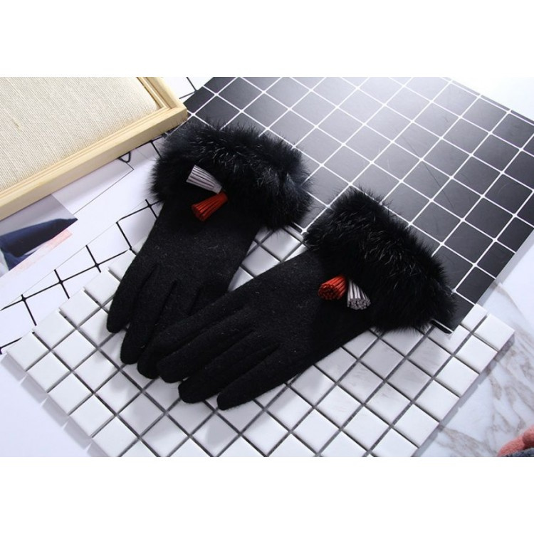 Urocze  rękawiczki w odcieniach czerni Bardzo elegancki i ekskluzywny model FUTRO SZTUCZNE Ozdobione uroczymi frędzelkami RĘKAWICZKI OCIEPLANE Możliwość osbierania telefonu dotykowego ! Nadadzą każdej zimowej stylizacji wyjątkowego charakteru. Rękawiczki bardzo ciepłe i cieszące się bardzo dużym zainteresowaniem.  Wymiary 22 cm x 9,5 cm Skład:  30% BAWEŁNA  70% AKRYL