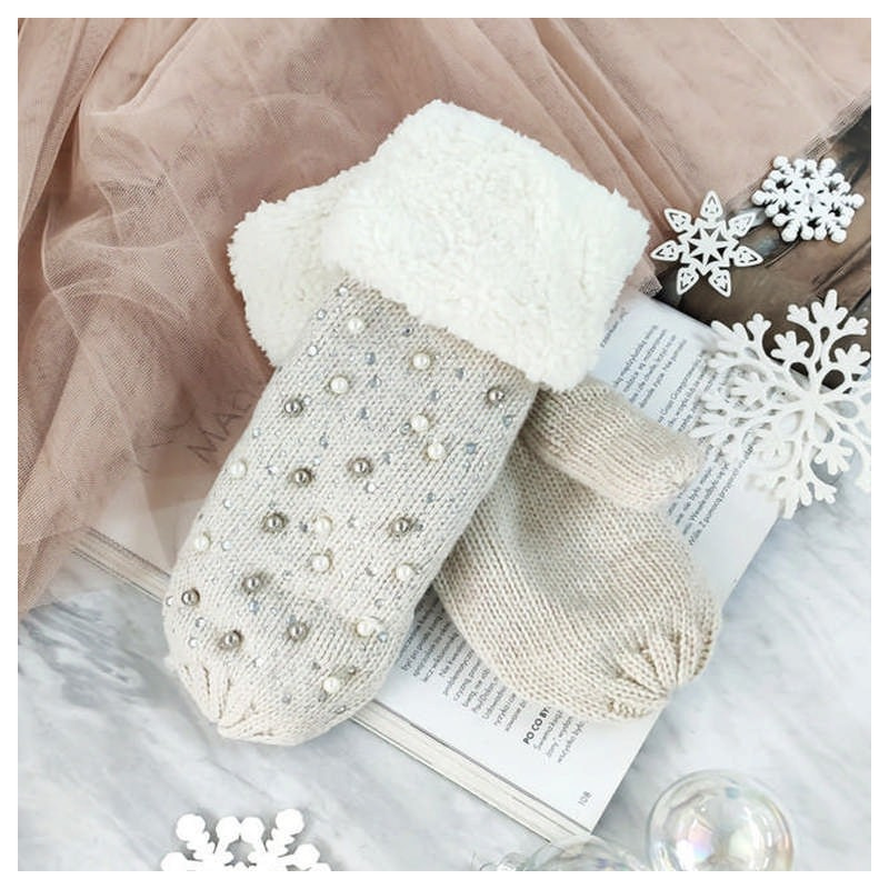 Urocze, ciepłe rękawiczki, zdobione małymi diamencikami i perełkami. Dodatkowo, z kożuszkiem.Idealne na zimę!Do wyboru w różnych kolorach.Rękawiczki nadadzą każdej zimowej stylizacji wyjątkowego charakteru!Skład: 30% wełna70% akryl