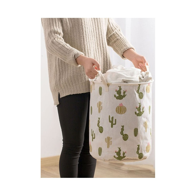 Worek, organizer na zabawki, pranie lub inne produkty Praktyczny dodatek do pokoju lub łazienki. Połączenie stylu skandynawskiego z praktycznością.  Posiada praktyczne rączki do przenoszenia pojemnika z miejsca na miejsce.  Skład: Brezent bawełniany - sztywny materiał Wymiary: - Szerokość: 40 cm  - Wysokość: 50 cm Waga: