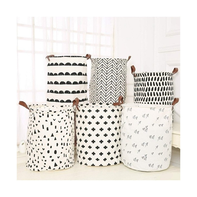Praktyczny dodatek do pokoju lub łazienki.Worek, organizer na zabawki, pranie lub inne produkty.Połączenie stylu skandynawskiego z praktycznością. Posiada praktyczne rączki do przenoszenia pojemnika z miejsca na miejsce. Skład:Brezent bawełniany - sztywny materiałWymiary:szerokość 35 cm wysokość  45 cm