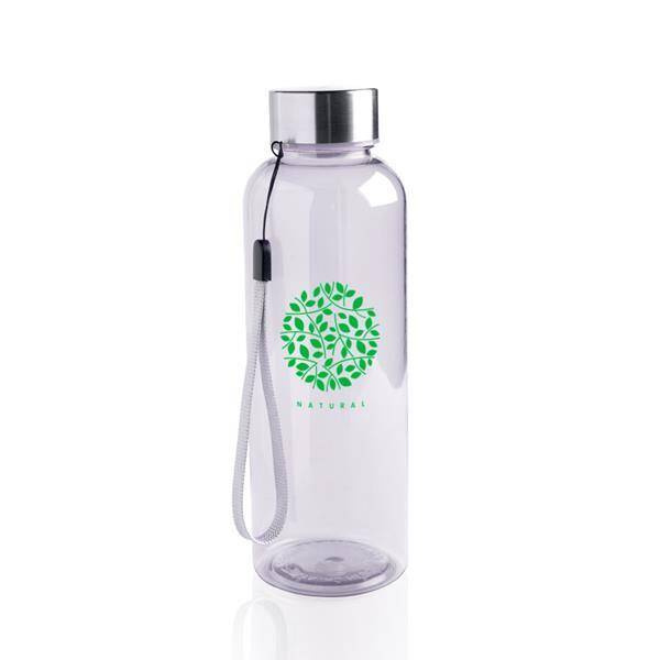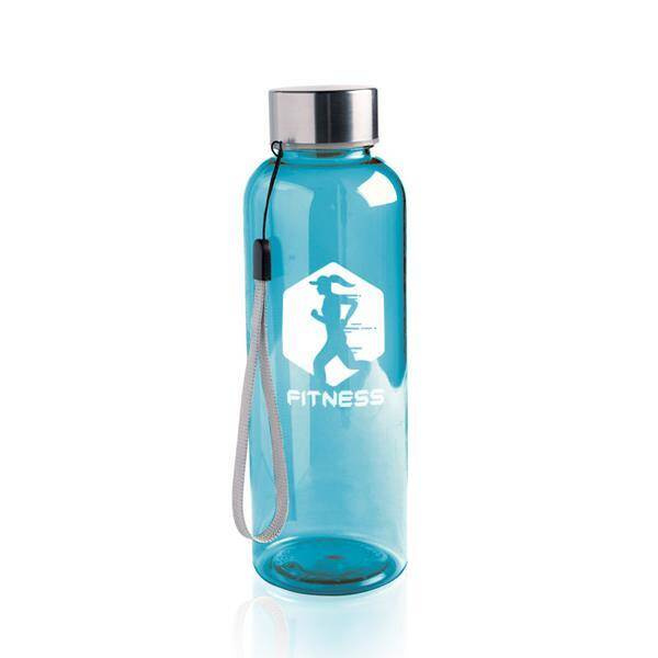 Butelka z tritanu, z metalową zakrętką i uchwytem na nadgarstek, pojemność 500 ml. Pakowana w pudełko.