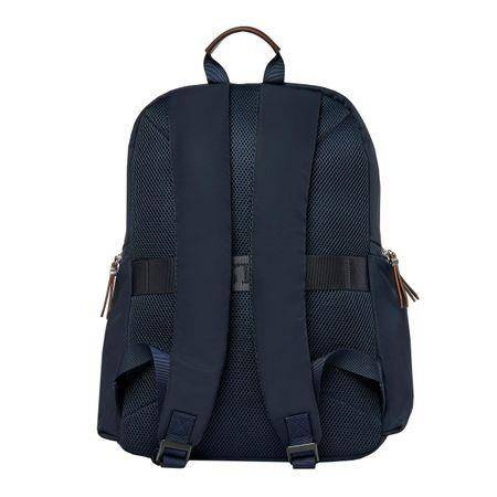 Torba `Festina` Button jest wykonana z gładkiego nylonu z teksturowanymi wykończeniami. Ponadgabarytowa płytka marynarki Button została zapożyczona z naszej tytułowej linii małych skórzanych towarów. Wyraziste chromowane akcenty i luksusowe metalowe i luksusowe metalowe detale nadają jej elegancki wygląd, jednocześnie zachowując ogólnie swobodną estetykę. Linia przycisków jest dostępna w dwóch kolorach: jedna wersja jest całkowicie czarna z emaliowaną tabliczką z podpisem, podczas gdy druga wersja łączy granatowy nylon z brązową wegańską skórą i wyrazistymi chromowanymi wykończeniami. Obie wersje charakteryzują się swobodną elegancją i są łatwe do łączenia i dopasowywania. Nasze logo Festina jest delikatnie wytłoczone na każdym produkcie, co stanowi subtelny końcowy akcent. Każdy szczegół jest delikatnie wykonany, w tym suwaki, ozdobione Festina Blazon, a także podszewka Festina z monogramem. Nasze plecaki Button zostały zaprojektowane z myślą o funkcjonalności, lekkie i kompaktowe, a jednocześnie bardzo wyrafinowane, z licznymi przegrodami zapinanymi na suwak, aby uporządkować wszystkie codzienne niezbędne rzeczy. Oprócz przedniej kieszeni i dwóch bocznych kieszeni zapinanych na zamek, wnętrze zawiera dedykowaną sekcję na laptopa. Ergonomiczny, wyściełany tył i regulowane paski zostały opracowane z myślą o doskonałym komforcie użytkowania, nawet przy przenoszeniu cięższych ładunków.
