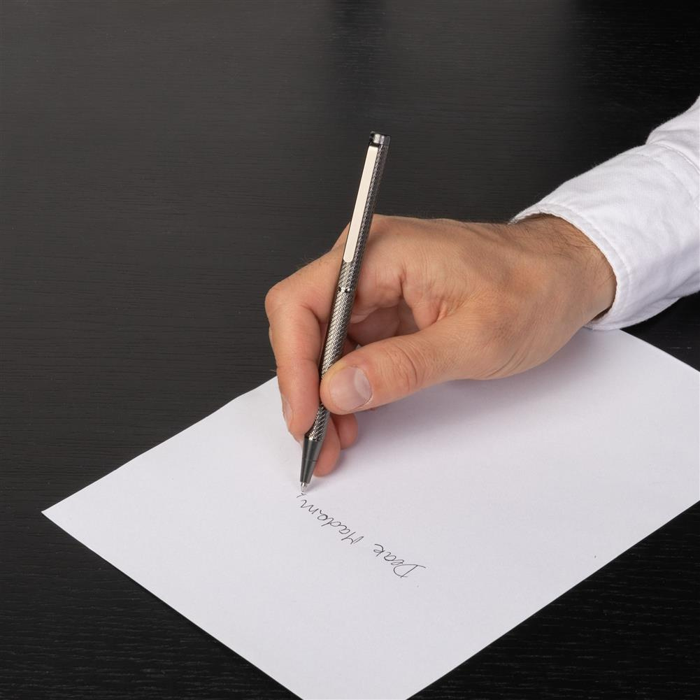 Przybory piśmienne Cloud charakteryzują się równowagą i funkcjonalnością, zachowując przy tym lekkość dzięki wyjątkowo smukłej sylwetce i minimalistycznej estetyce. Grawerowany wzór stanowi podniosły akcent i jest dostępny w trzech różnych odcieniach metalu. Ta wersja pistoletu jest zdecydowanie nowoczesna i elegancka.