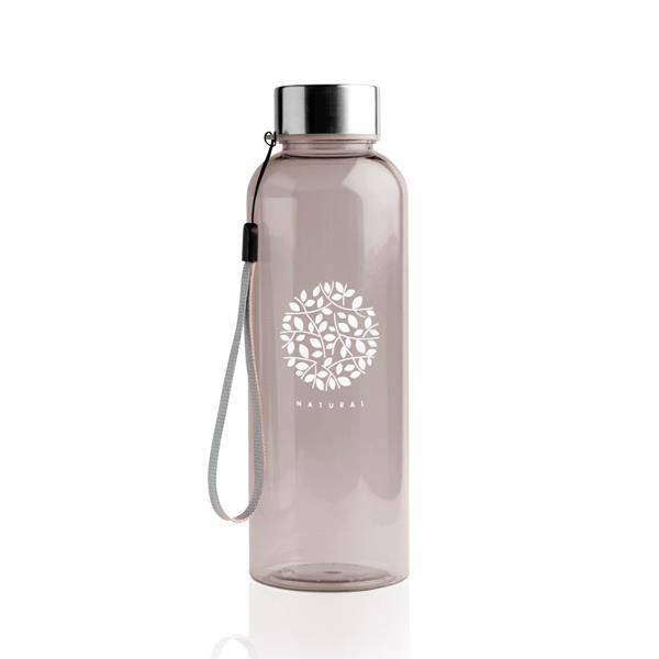 Butelka z tritanu, z metalową zakrętką i uchwytem na nadgarstek, pojemność 500 ml. Pakowana w pudełko.