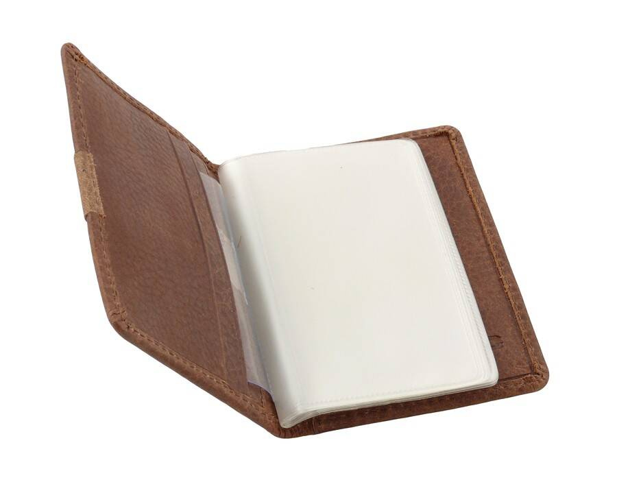 detale:przezroczysty wkład na karty lub wizytówki przegrody na 6 kart przezroczysta zewnętrzna kieszonka materiał: skóra naturalna wymiary: 7.5 x 10.2 x 1 cm