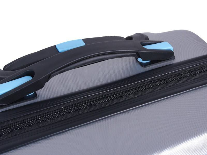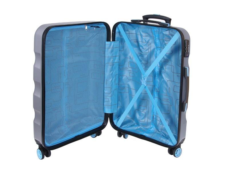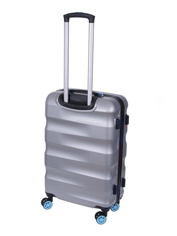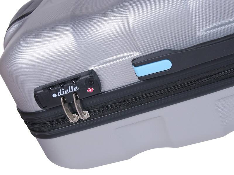 Średnia walizka włoskiej marki Dielle z kolekcji 150. Korpus wykonany z wytrzymałego i trwałego ABS-u. Wygodne uchwyty z boku i u góry ułatwiają umieszczenie jej bagażniku auta lub zdjęcie z lotniskowego transportera. Cztery podwójne obrotowe kółka gwarantują komfort przemieszczania się. Wysuwana teleskopowo , regulowana rączka stelaża. Charakterystyczne przetłoczenia walizki podkreślają niepowtarzalny wygląd tej kolekcji. Przewożoną zawartość chroni zamek szyfrowy w standardzie TSA. Wnętrze wyłożone elegancką podszewką w kontrastowym , niebieskim kolorze. Walizka charakteryzuje się wyjątkowym wyglądem oraz jakością wykonania.