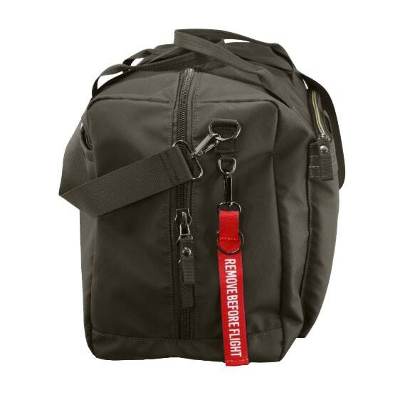 Torba podróżna podręczna o pojemności 30 litrów włoskiej marki Aeronautica Militare z kolekcji Frecce. Torba, która doskonale sprawdzi się podczas krótkich wypadów, lub jako uzupełnienie większego bagażu. Wykonany ze specjalnej gumowanej tkaniny technicznej o podwyższonych parametrach odporności na przemakanie. Wyrób cechuje niepowtarzalny styl i wyjątkowe walory użytkowe.Szczegóły torby:komora główna zamykana na suwak2 duże uchwyty do przenoszenia torby w ręcewymienna zawieszka/breloczek do kluczykomora główna szeroko otwieranaduża przednia kieszeńduża kieszeń z tyłuodpinany pasek na ramię, regulowany w zakresie 80 - 150 cmwewnętrzna otwarta kieszeńpodszewka z wzorem moro, wykonana z poliestrumetalowe detale i emblemat Włoskich Sił Powietrznych oraz wytłoczone logo markiBezpieczeństwo - rodzaj ostrzeżenia
