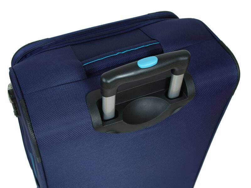 - Teleskopowy stelaż ze stopów lekkich Rączka u góry i z boku walizki