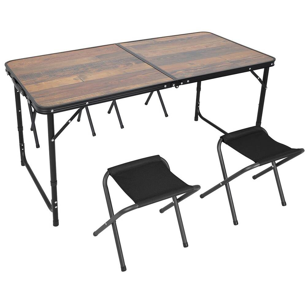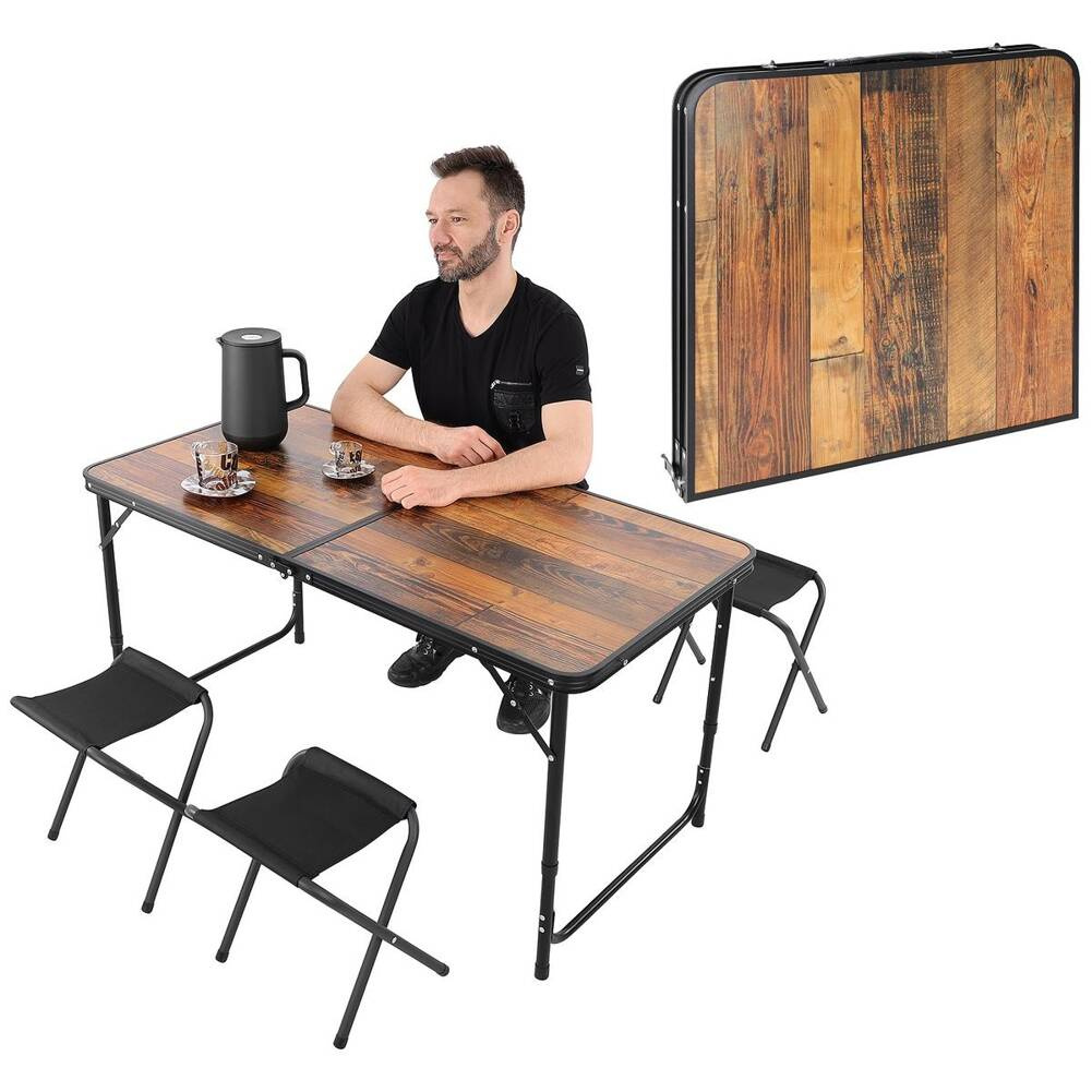 STOLIK TURYSTYCZNY SKŁADANY KEMPINGOWY 120X60X70/62/55CM I 4 KRZESŁA DREWNO