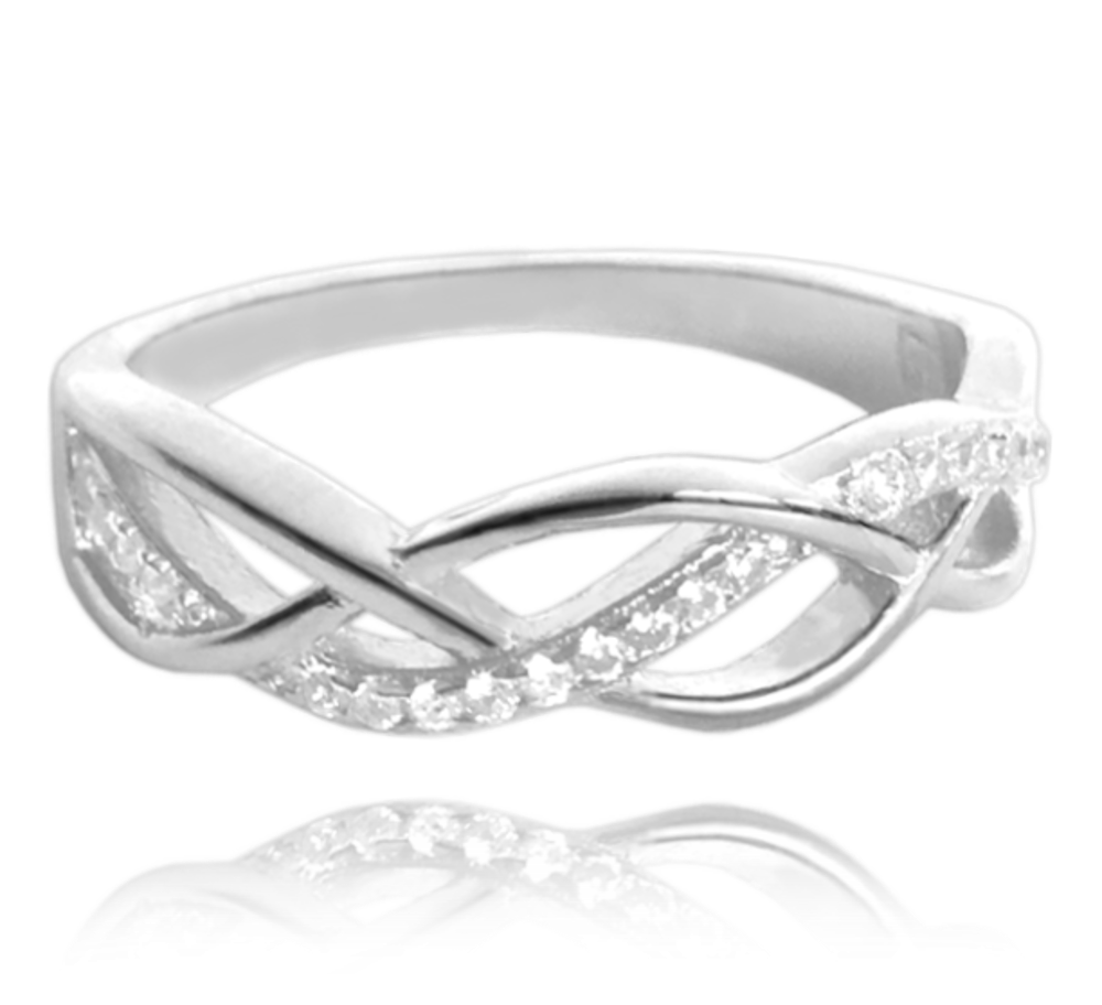 MINET Pierścien srebrny spleciony z białymi cyrkoniami wielkość 29