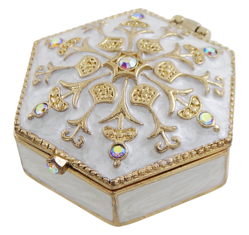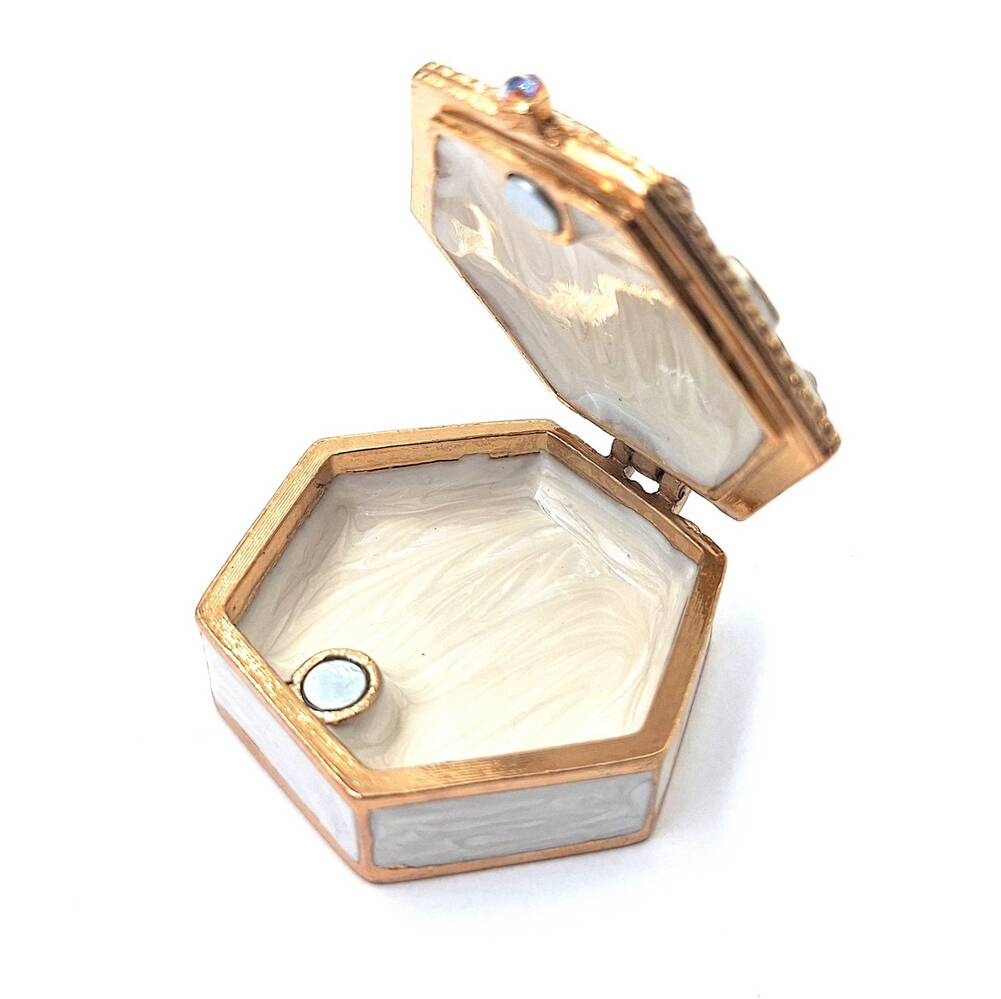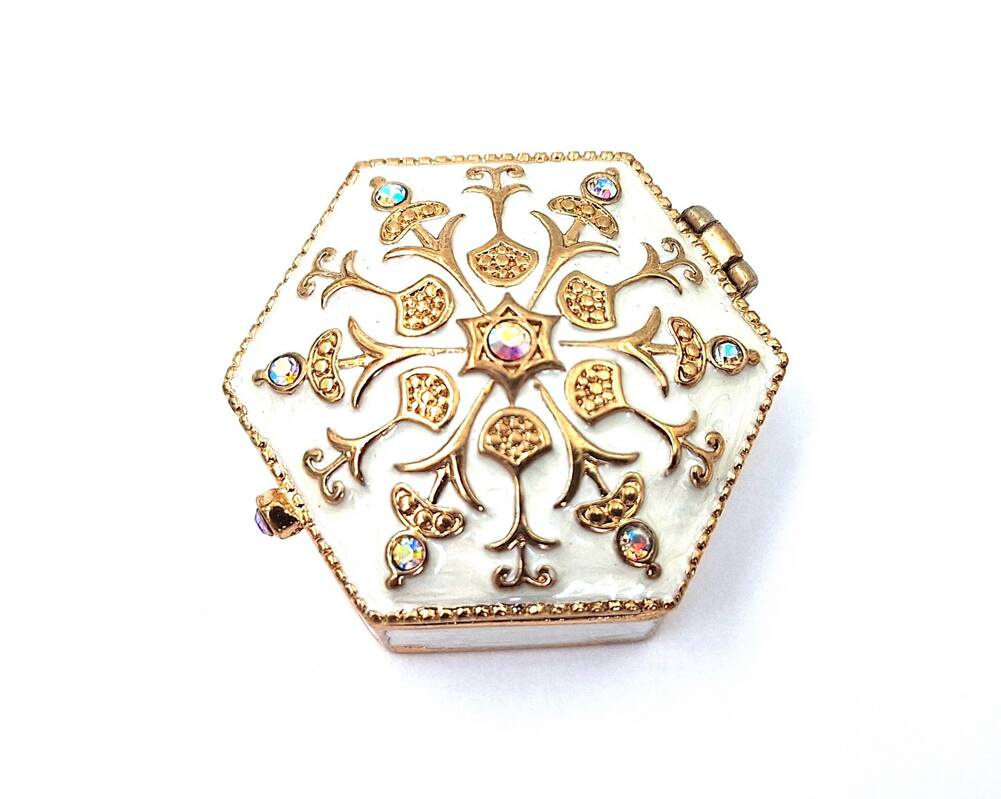 • Piękne bogato zdobione biało-złote pudełko (otwierane) z kryształkami