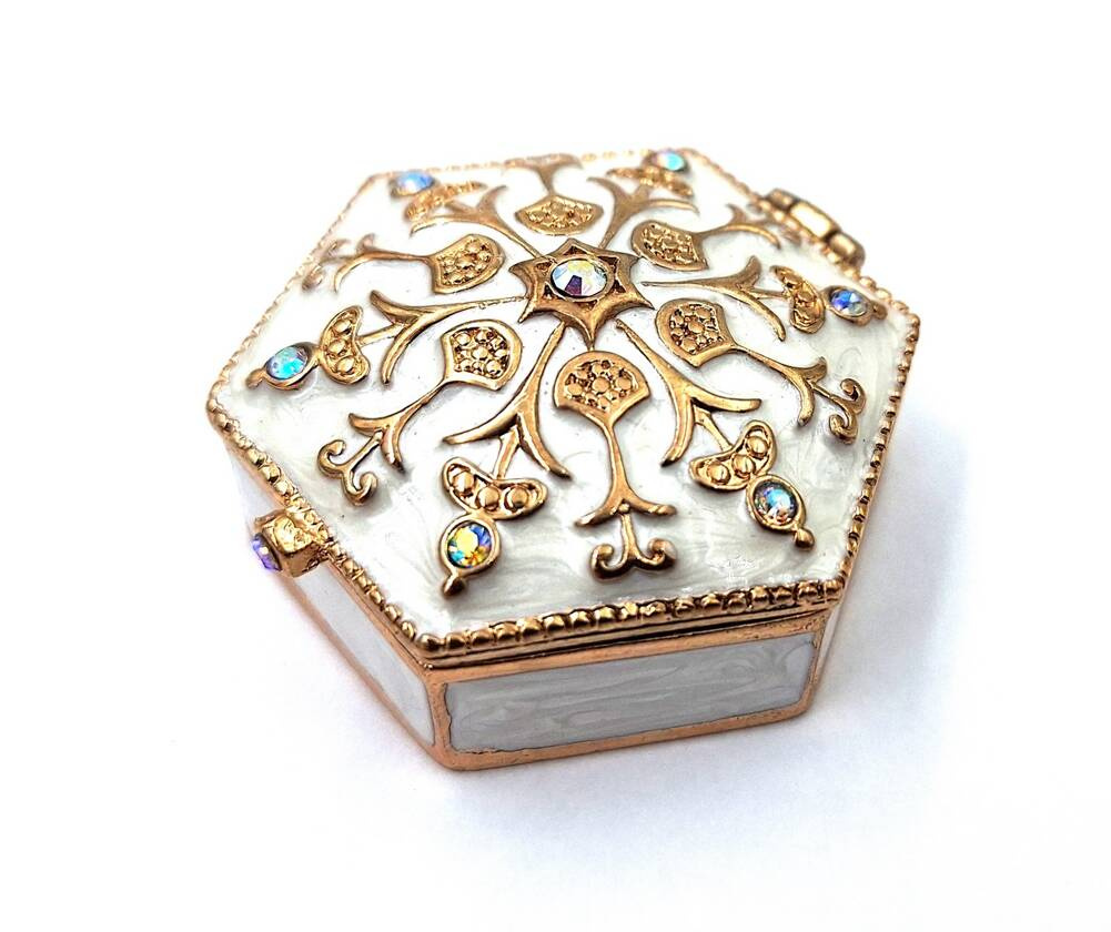 Bogato zdobione metalowe pudełeczko prezentowe z kryształkami - B0035-08WH