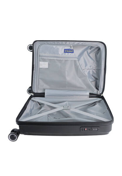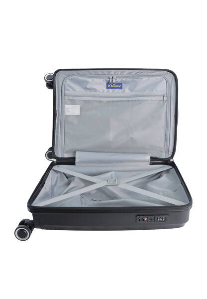 Walizka Saxoline HOLLIDAY EXPRESS to produkt który charakteryzuje się nowoczesnym designem, a do tego posiada płaski zamek szyfrowy TSA, dzięki czemu zabezpieczysz zawartość przed kradzieżą. Została wykonana z w 100% z polipropylenu, więc skorupa jest stosunkowo lekka i wytrzymała na pęknięcia oraz drobne zarysowania. Prosty ale elegancki wygląd na pewno spodoba się każdemu.