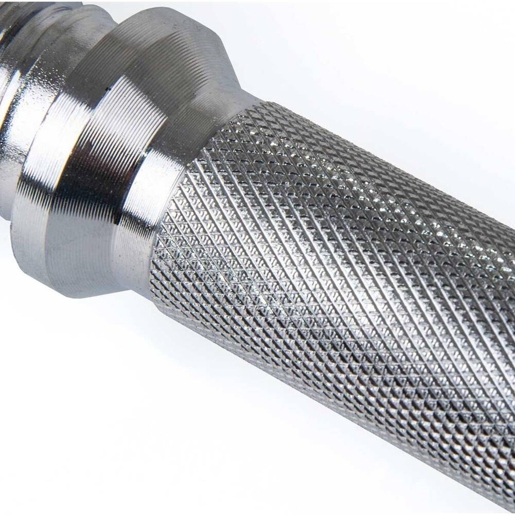 Antypoślizgowa (ryflowana) część chwytna o specjalnych nacięciach zwiększy Twoje bezpieczeństwo, zapewni pewny i wygodny chwyt, dzięki niej ryzyko wyślizgnięcia się sztangi z dłoni jest minimalne. Gwintowane zaciski precyzyjnie docisną talerze przez cały czas treningu. Dzięki temu obciążenie rozłoży się równomiernie, a trening będzie efektywniejszy.