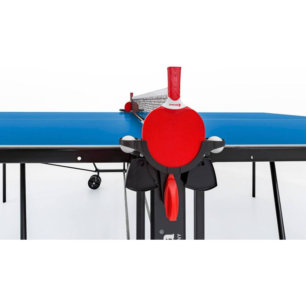 Po obu stronach uchwyty na rakietki oraz piłeczki.