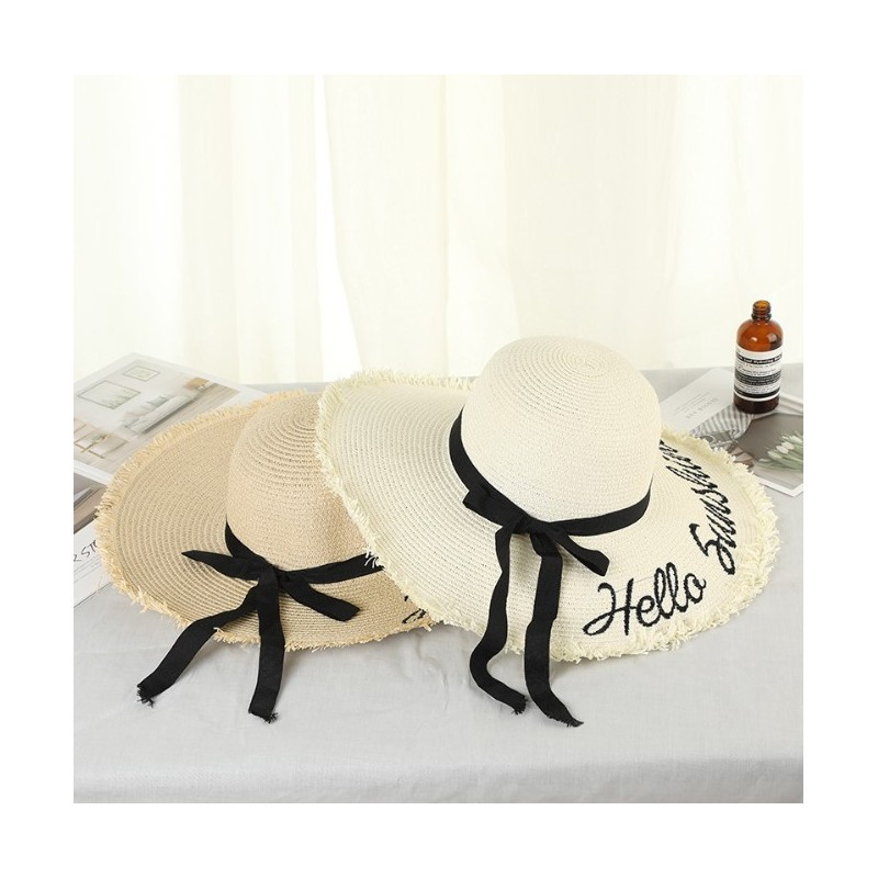Stylowy kapelusz damski plażowy słomkowy HELLO SUNSHINE kokarda CZ47