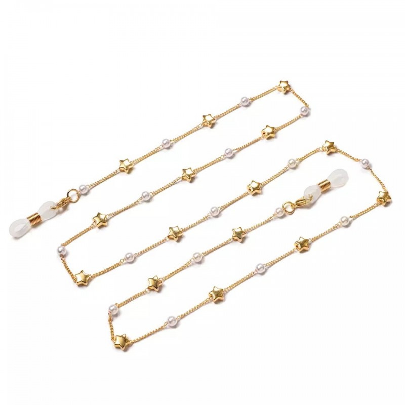 Łańcuszek do okularów cienki złoty gwiazdki perły 72cm LDK09