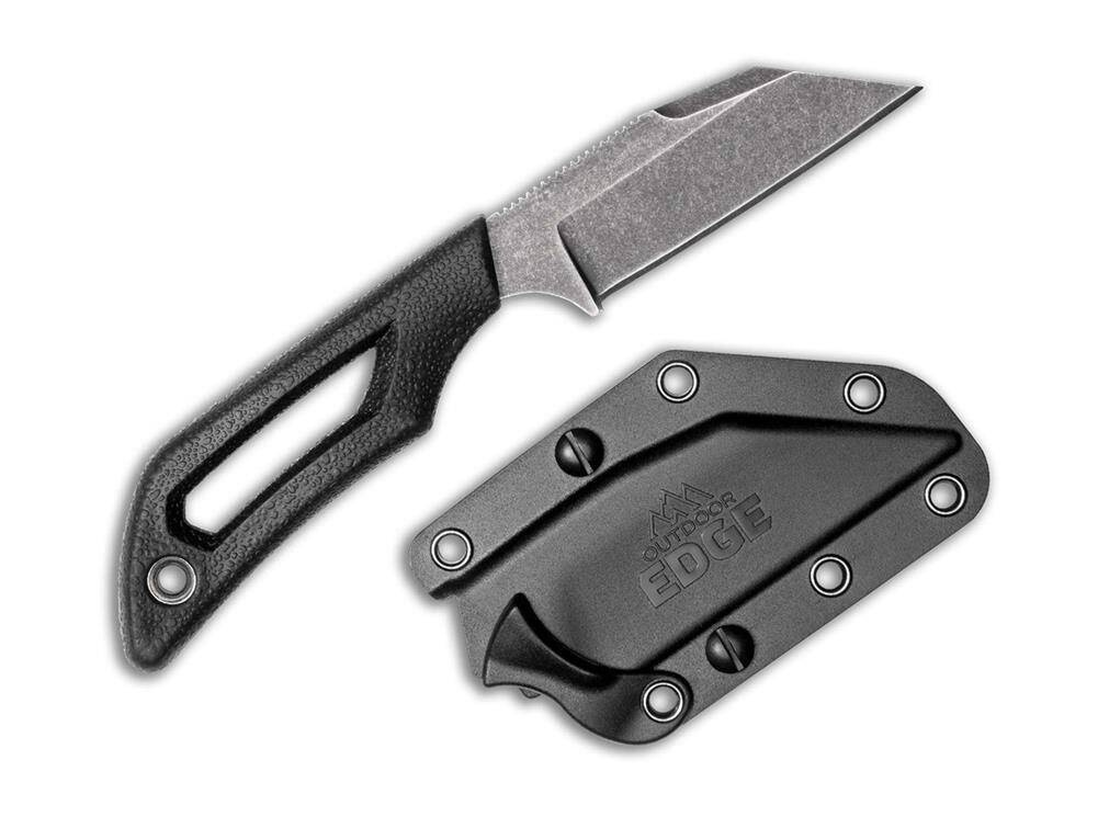 Wszechstronny Outdoor Edge Pivot z ostrzem wharncliffe jest niezbędnym towarzyszem na świeżym powietrzu i na polowaniach. Ostrze 8Cr13MoV wykończono trwałym, nierefleksyjnym wykończeniem BlackStone. Polimerowa osłona posiada klamrę z mechanizmem szybkiego zwalniania oraz zdejmowany, obracający się o 360 stopni klips umożliwiający przymocowanie do paska lub systemu MOLLE. Nóż o solidnej konstrukcji posiada zmniejszające wagę wgłębienie na rękojeści, która jest pokryta antypoślizgowym materiałem TPR, zapewniającym doskonały chwyt nawet w najbardziej niesprzyjających warunkach. Z oczkiem na smycz i czarnym paracordem 550