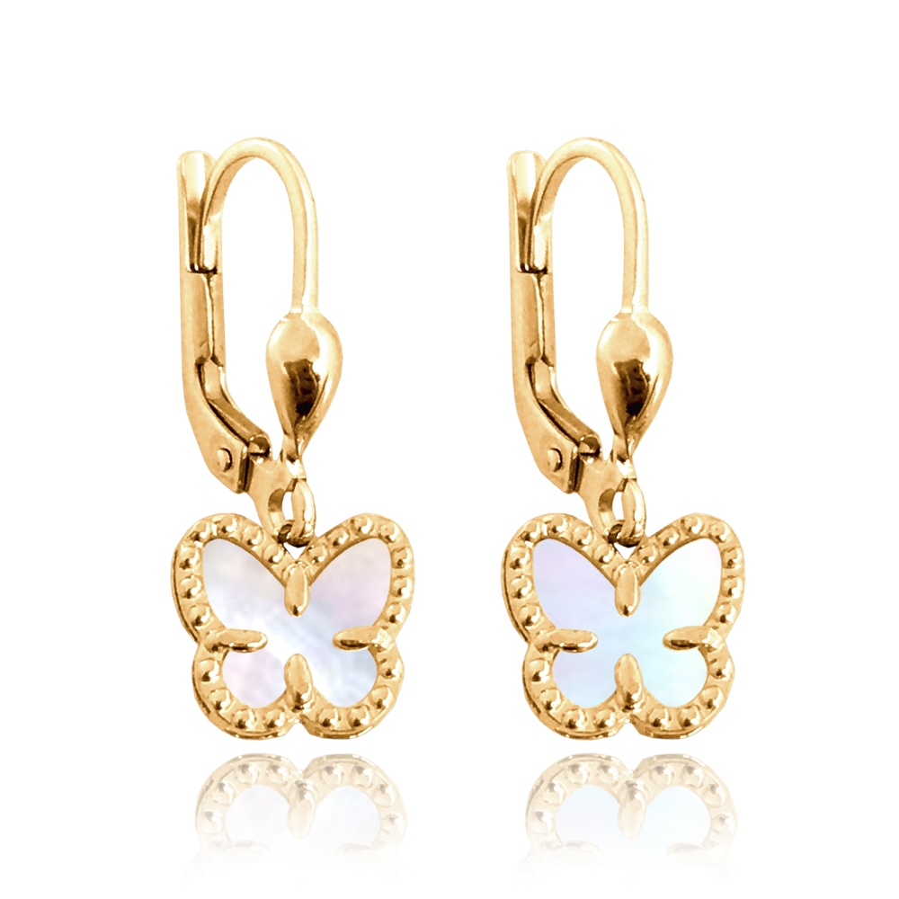 MINET Złote kolczyki motyle z białą perłą Au 585/1000 2,35g