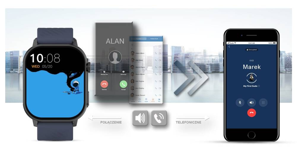 Po sparowaniu smartwatcha z twoim smartfonem, możesz bezproblemowo odbierać i wykonywać połączenia telefoniczne. Wbudowany głośnik oraz mikrofon pozwala rozmawiać bez konieczności wyciągania telefonu komórkowego.