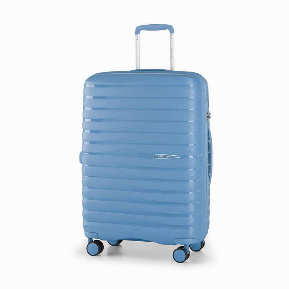 - walizka twarda wykonana z polipropylenu, materiału charakteryzującego się super lekką wagą i niezwykłą wytrzymałością