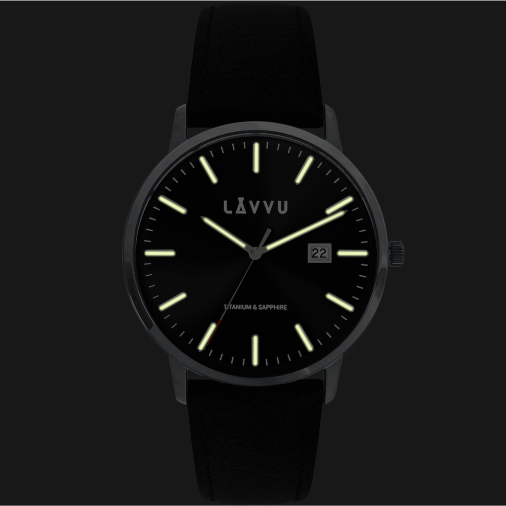 LAVVU Czarny zegarek męski z szafirowym szkłem Copenhagen Titanium Black
