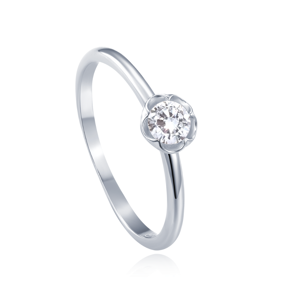 MINET Srebrny pierścionek kwiat z białą cyrkonią wielkość 8 cyrkoniami wielkość 45