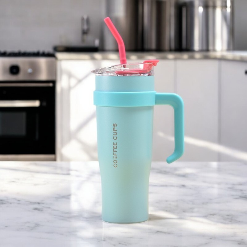 Kubek termiczny z rączką przenośnyTo świetne rozwiązanie dla osób aktywnych, uprawiających sport. Butelka jest wykonana z trwałego i bezpiecznego dla zdrowia plastiku, który jest odporny na uszkodzenia mechaniczne i nieprzepuszczalny dla zapachów.Dzięki temu możesz być pewien, że Twoja woda pozostanie świeża i smaczna przez długi czas.Konstrukcja termosu próżniowego ze stali nierdzewnej pozwala na używanie go na gorąco lub na zimnoSpecyfikacja:-pojemność 1,2l.-ustnik ze słomką- przeźroczysta pokrywka- unikatowe kolory- szeroki otwór ułatwiający mycie- praktyczna rączka- zamknięcie zabezpieczone przed przeciekaniem Wymiary : średnica 10 cmwysokość z zawleczką 27 cm Pojemność : 1200ml Materiał: Stal nierdzewna/ tworzywo sztuczneUWAGA ! Myć i płukać w zwykłej ciepłej wodzie. Nie myć w zmywarce.Po użyciu butelkiumyj ręcznie butelkę ciepłą wodą i płynem do naczyńprzechowuj otwartą i dokładnie wysuszonąMyciemyj ręcznienie gotujnie zamrażajnie używaj w kuchence mikrofalowejnie używaj ostrych myjek