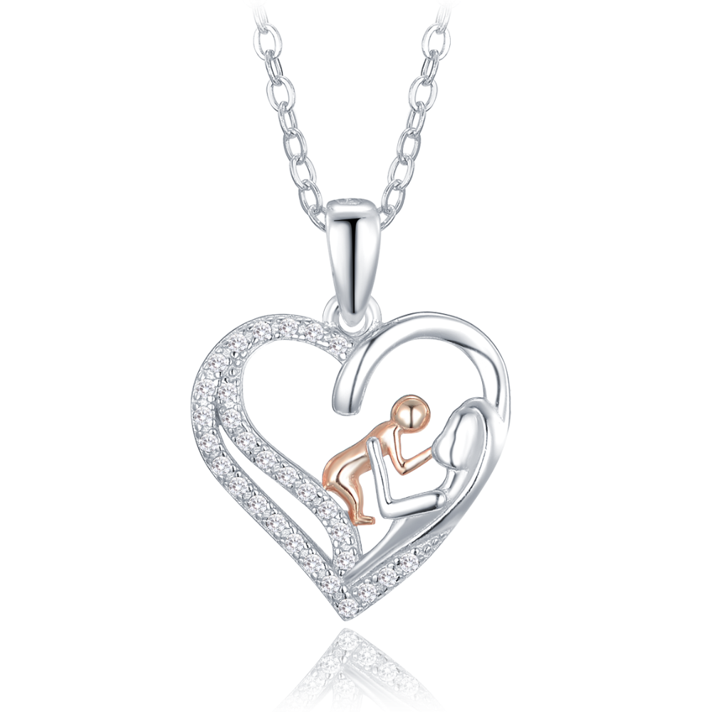 MINET Srebrny naszyjnik Madonna z Rosegold dzieckiem i białymi cyrkoniami