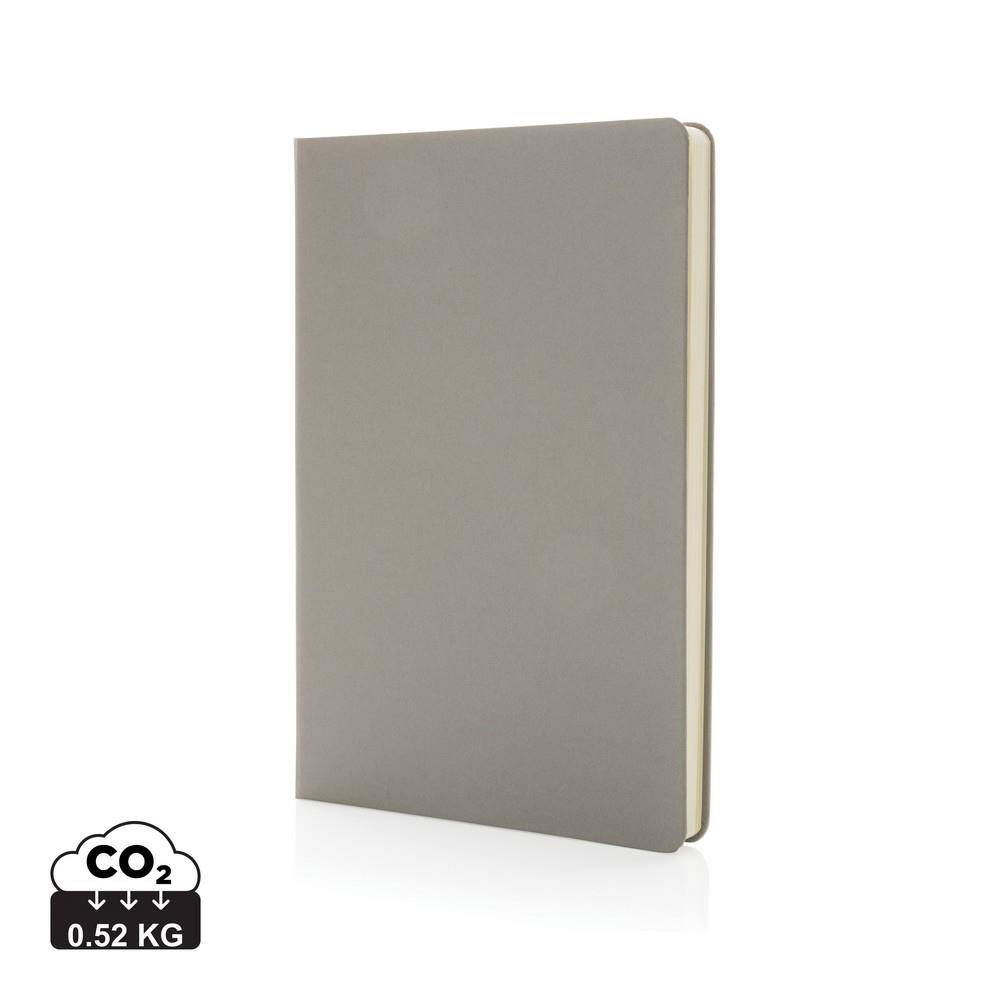 Notatnik A5, (80 kremowych kartek w linie), twarda okładka, okładka oraz strony wewnętrzne posiadają certyfikat FSC® (Forest Stewardship Council), tasiemka