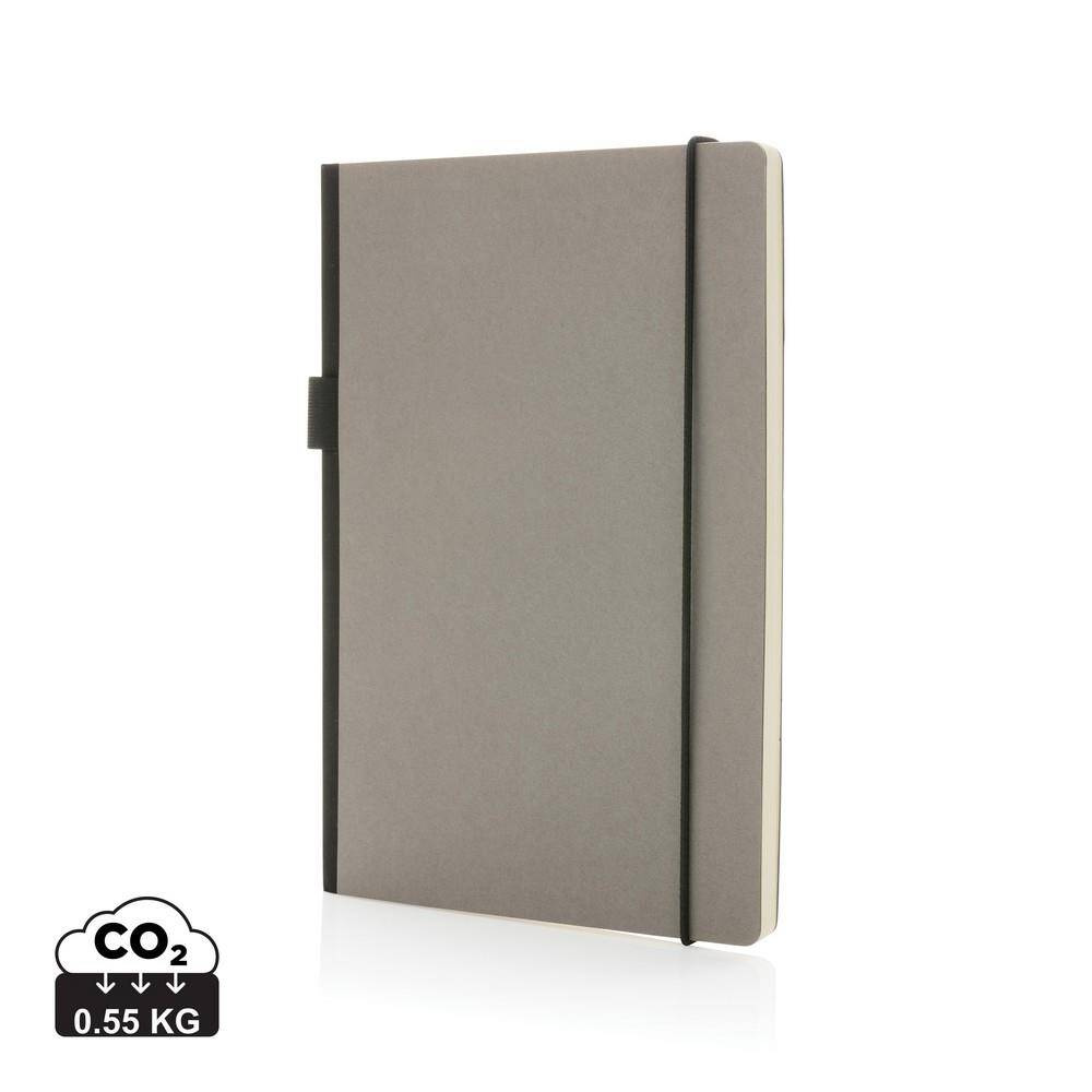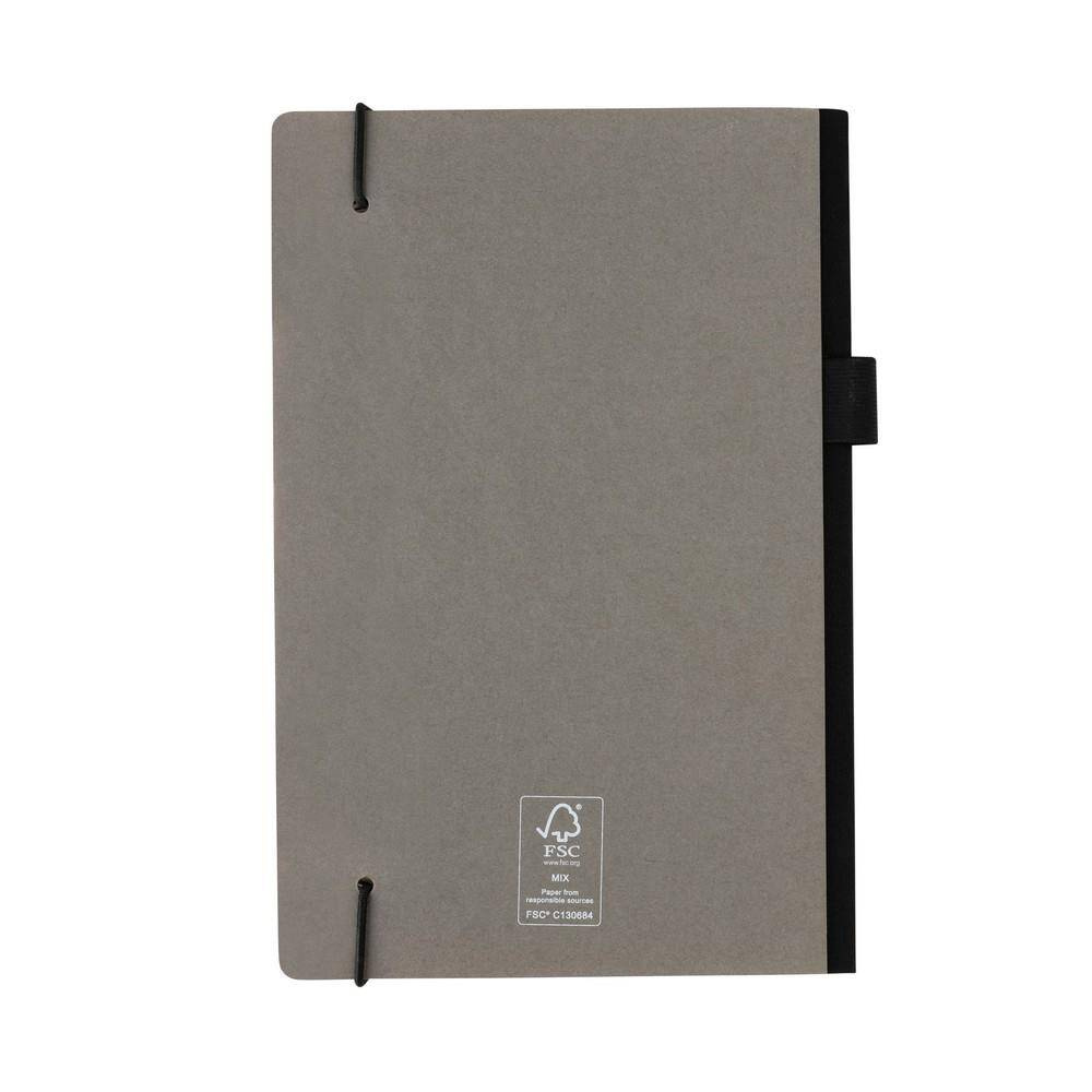 Notatnik A5, (80 kremowych kartek w linie), twarda okładka, okładka oraz strony wewnętrzne posiadają certyfikat FSC® (Forest Stewardship Council), tasiemka