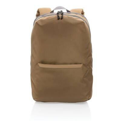 Plecak na laptopa 15,6", minimalistyczny design, zewnętrzna i wewnętrzna część wykonana z poliestru z recyklingu do produkcji którego zostało ponownie