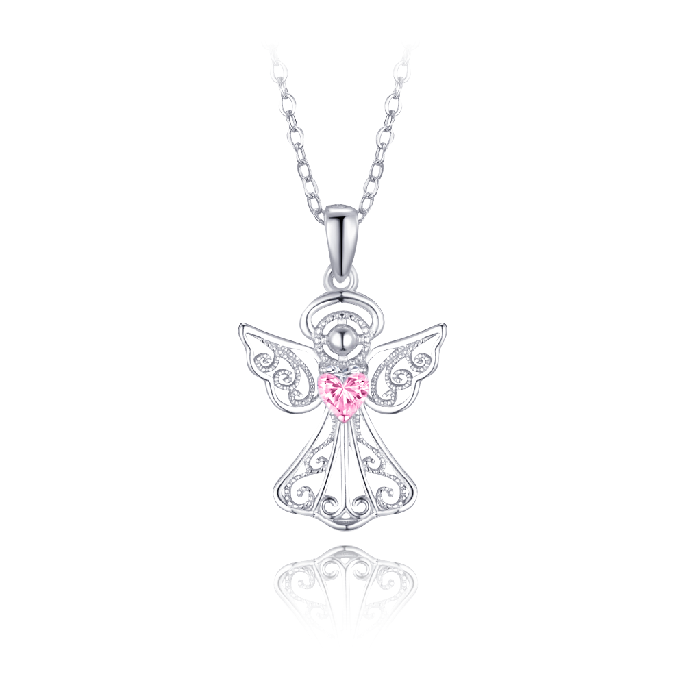 MINET Naszyjnik srebrny anioł z różową cyrkonią