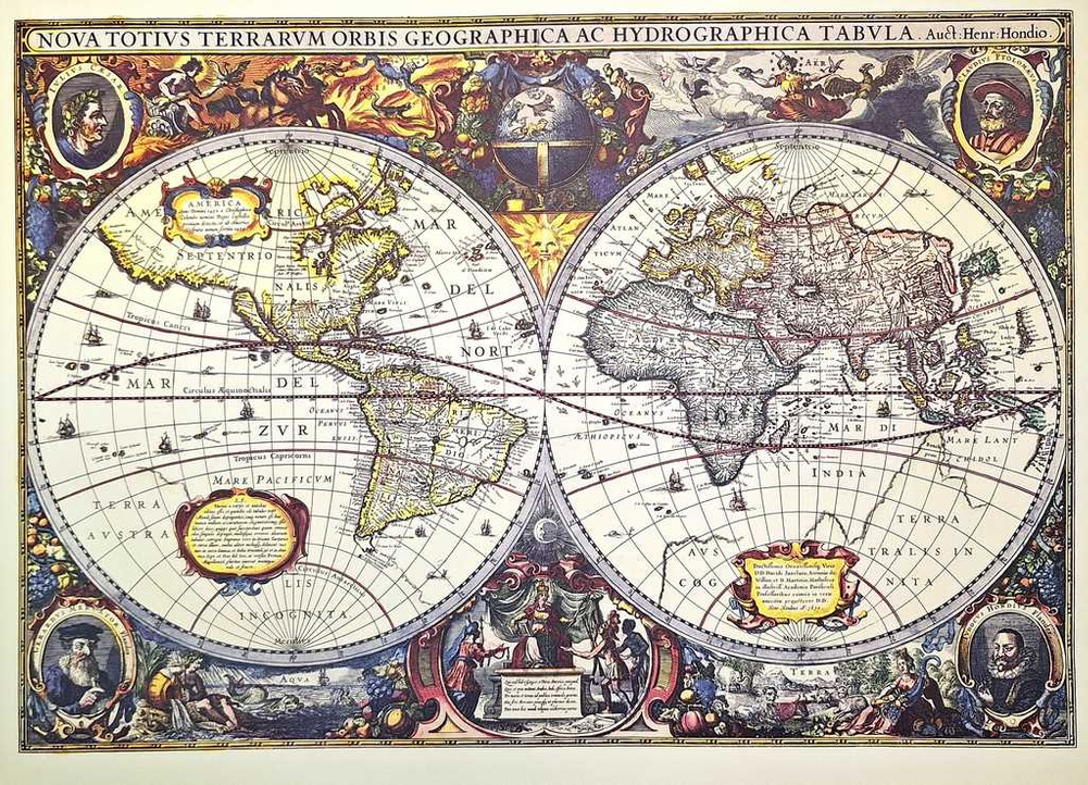 Mapa świata 1630r. - J.Hondius reprint - M.1630 Historyczna mapa Świata to wyjątkowa dekoracja, która przystroi każde pomieszczenie odkrywczym klimatem. Niezawodnie sprawdzi się jako prezent dla podróżnika i historyka. Mapa historyczna to nie tylko dekoracja, ale także źródło wiedzy o przeszłości. Mapa ma niepowtarzalny urok i pięknie prezentuje się w ramie. Informacje o produkcie: • Wymiary: 54,3 x 37,8 cm • Tuba do przechowywania mapy w komplecie • Wydruk reprintu przygotowany z największą dbałością o podobieństwo do oryginalnej mapy. • Data wydania oryginału: 1630 rok • Autor: Hendrik Hondius Historia mapy Dekoracyjna mapa Świata wykonana przez Hendricusa Hondiusa w 1630r. Mapa została opublikowana w atlasie Gerarda Mercatora i Jodocusa Hondiusa Podstawowa kartografia naśladuje mapy Świata – dzieła Johna Speed'a. Mapa jest doskonałym przykładem holenderskiej kartografii w stylu barokowym. Twórca mapy Henricus Hondius był synem słynnego kartografa Joducusa Hondiusa, którego portret znajduje się w lewym dolnym rogu. Mapa zawiera również portrety Gerardusa Mercatora, Klaudiusza Ptolemeusza i Juliusza Cezara. Oprócz licznych pięknych ilustracji i szczegółów mapy, na uwagę zasługuje kilka cech geograficznych zawartych na tej mapie, w tym Kalifornia jako wyspa, sieci rzeczne i jeziora Ameryki Północnej oraz linia brzegowa Australii. Uważana jest za jedną z najpiękniejszych map Świata tego okresu.