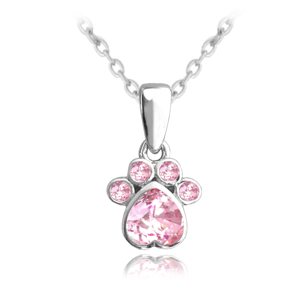 MINET Srebrny naszyjnik ŁAPA z różowymi cyrkoniami