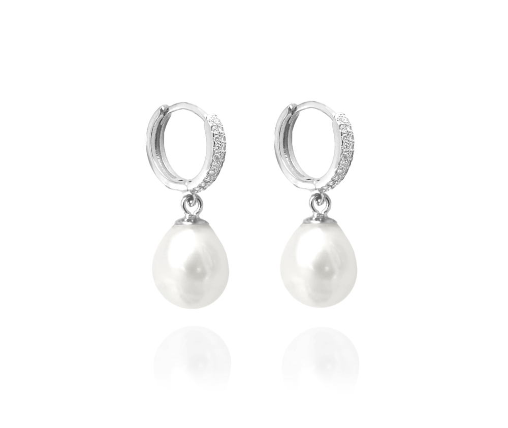 MINET Srebrne kolczyki naturalne białe perły z cyrkoniami
