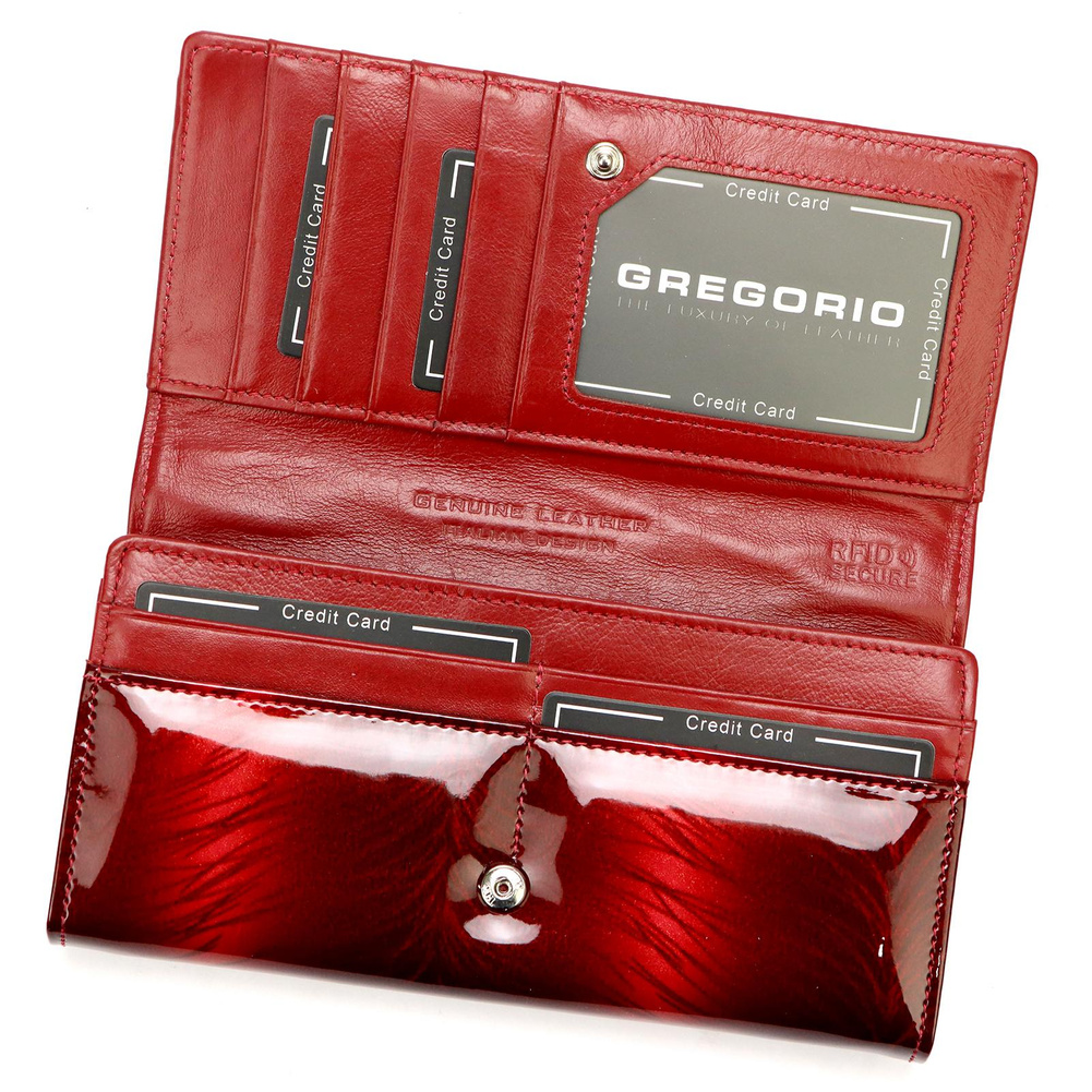 Model posiada dwie główne komory oraz aż dziewięć przegródek na karty, co pozwala na wygodne przechowywanie wszystkich niezbędnych dokumentów i kart. Dodatkowo, dwie kieszenie na monety, zamykane na suwak, zapewniają pełne bezpieczeństwo przechowywania gotówki. Portmonetka wyposażona jest również w technologię ochrony RFID, co chroni karty przed nieautoryzowanym odczytem i zapewnia pełne bezpieczeństwo danych.